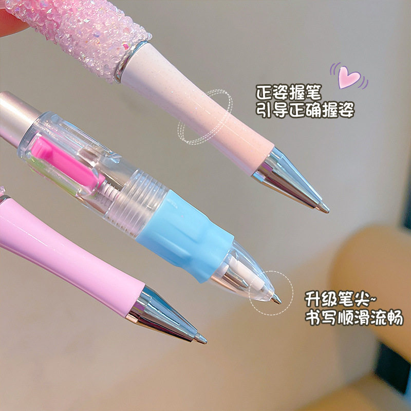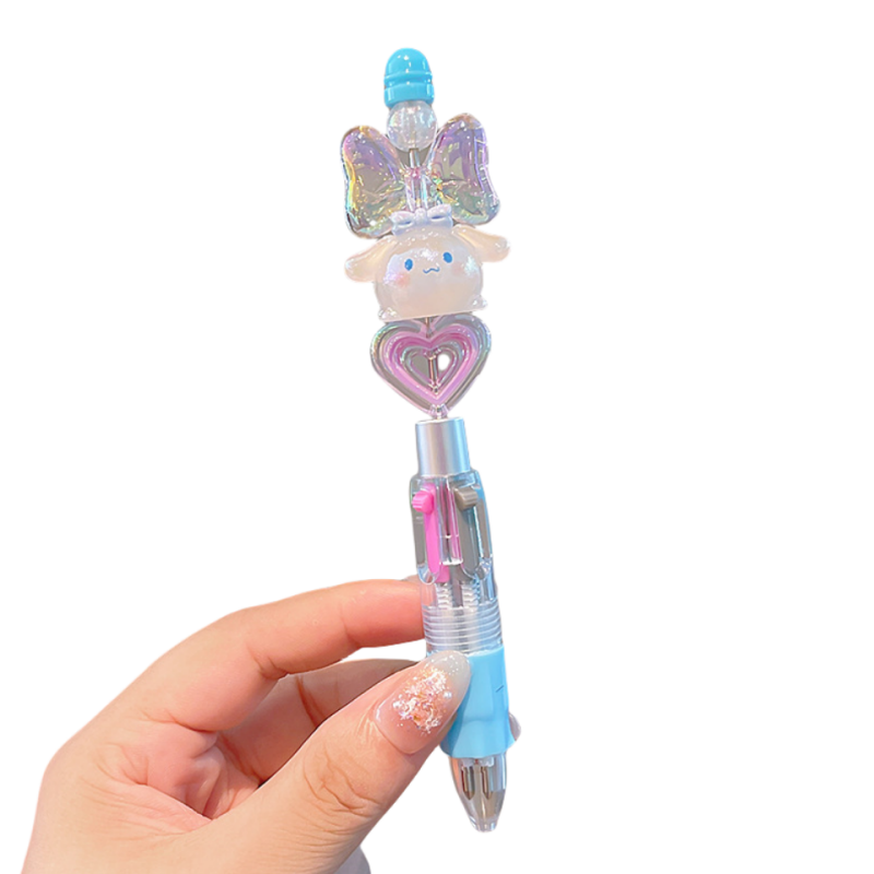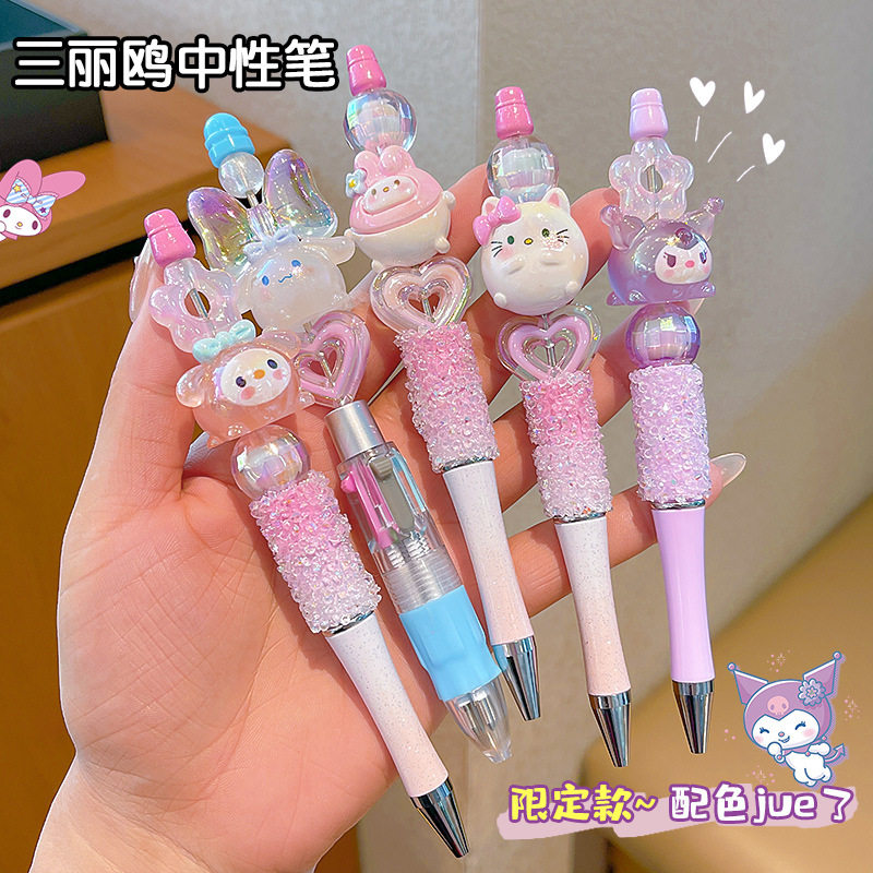 玉桂狗学生水晶闪钻黑色中性笔可旋转库洛米卡通镭射激光串珠笔