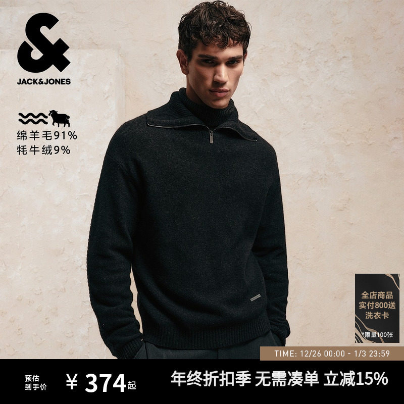 杰克琼斯男装冬季毛衣针织衫2025年新款纯色半拉链日常长袖上衣