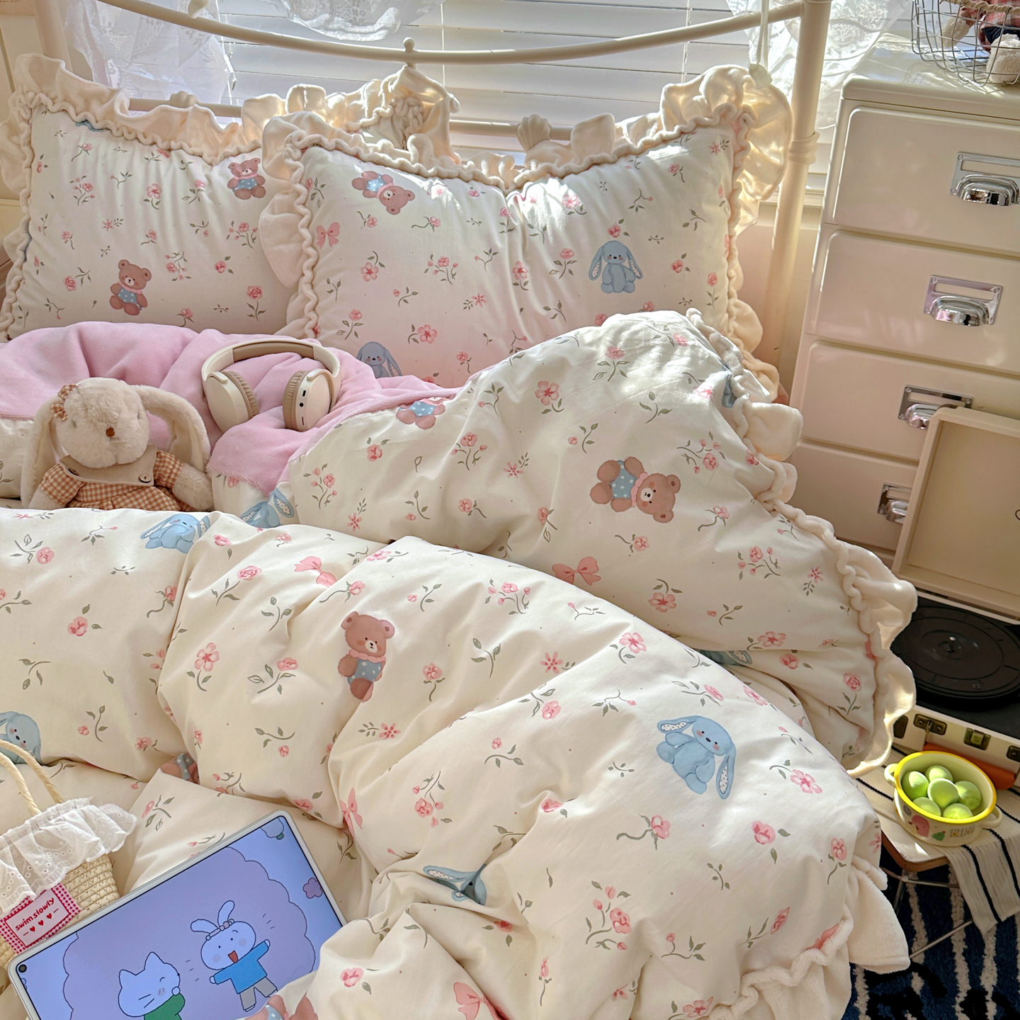 A类洛丽塔床上四件套纯棉全棉床单被套被罩床笠春学生宿舍三件套4