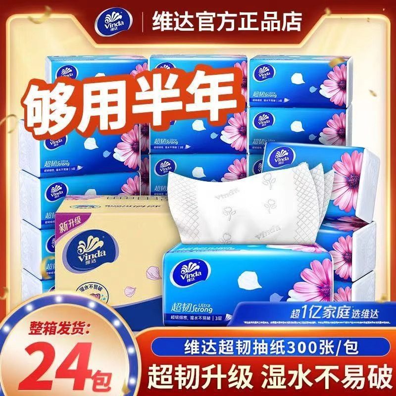 维达家用抽纸300张加厚实惠装餐巾纸面巾纸卫生纸整箱香味超韧