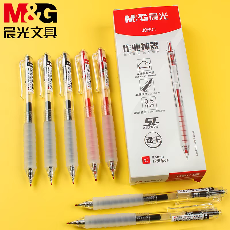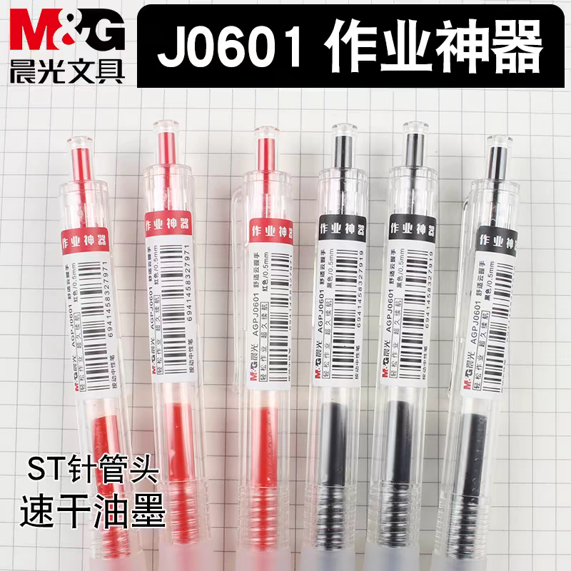 晨光作业神器按动中性笔0.5学生刷题笔st按压式速干笔J0601黑水笔