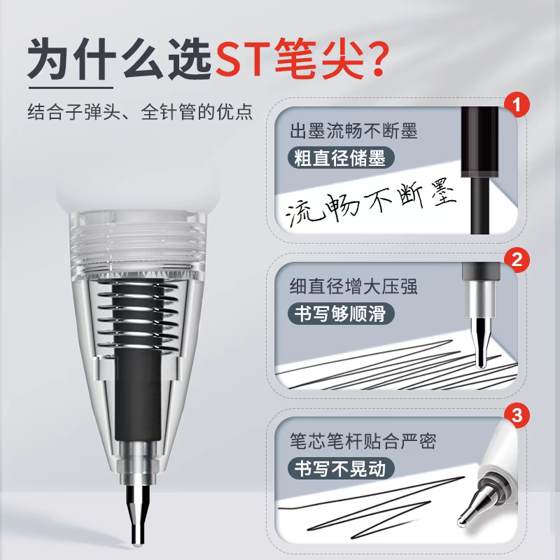 ST刷题笔高颜值按动中性笔圆珠笔黑色水笔小学生专用考试0.5速干碳素笔水性黑笔按压式做笔记签字笔非按斤卖