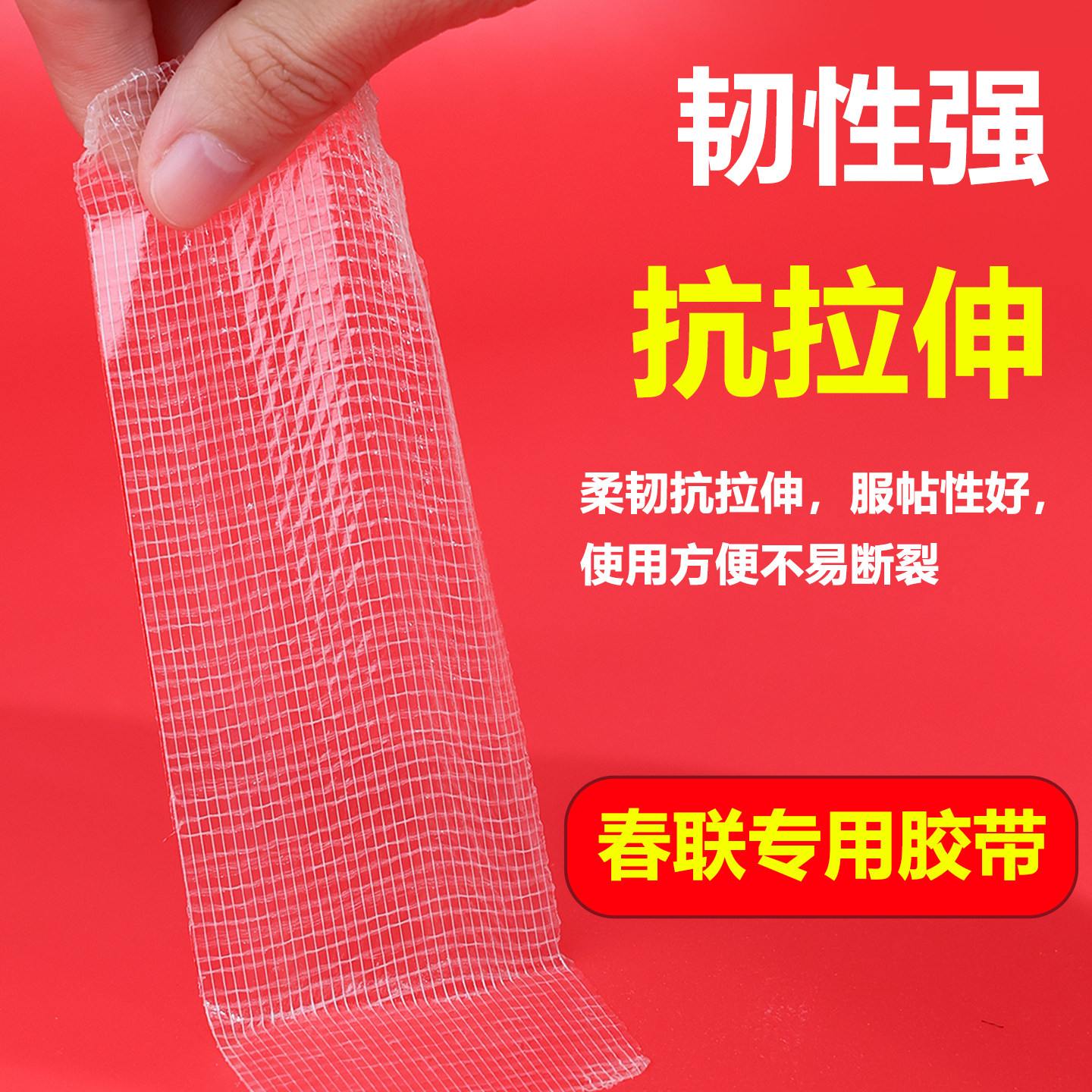 贴春联对联双面胶带撕下不留痕迹红色网格胶