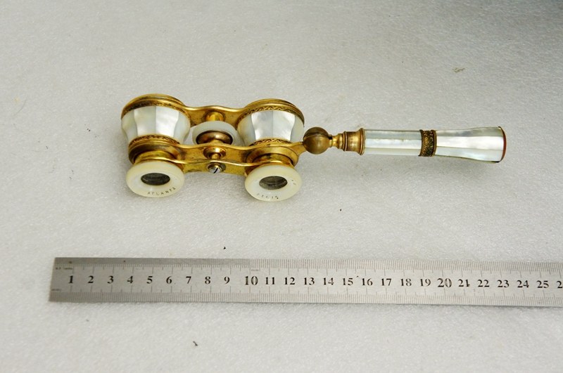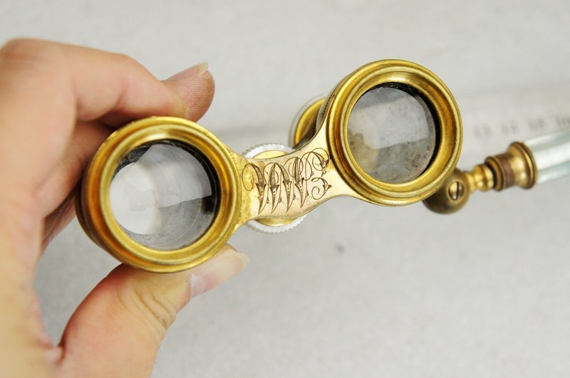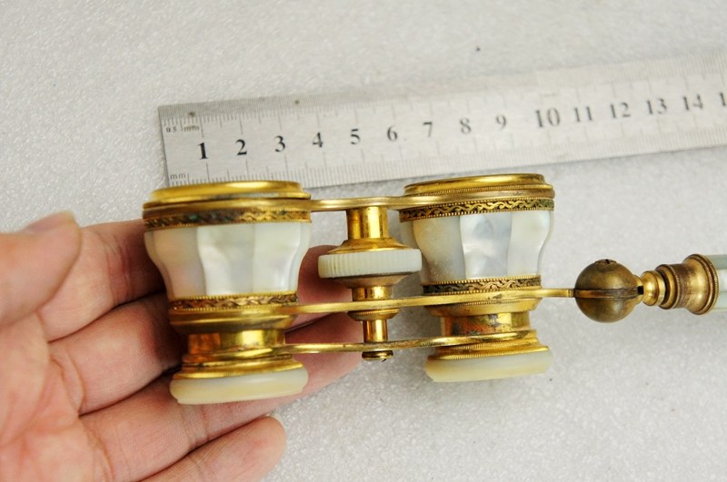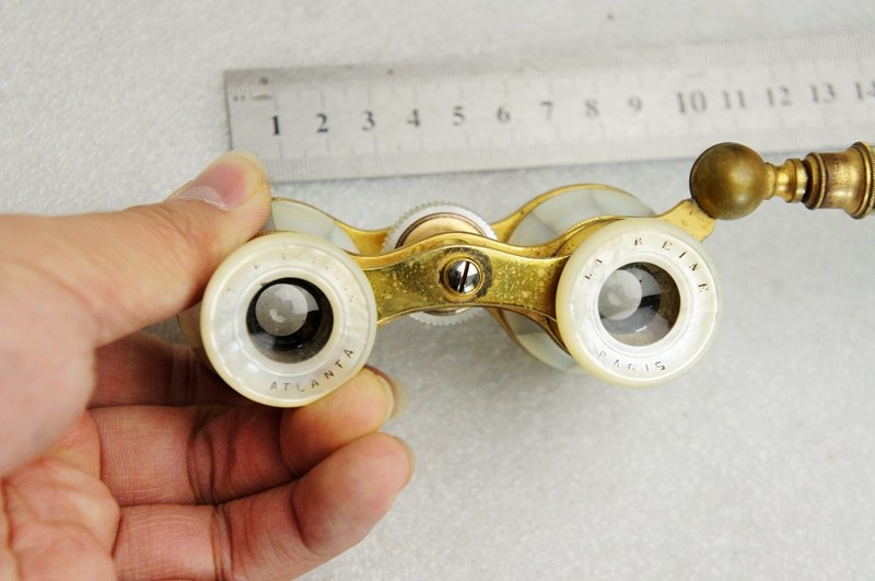 法国巴黎 珍珠母贝望远镜带手柄 古董老式国外全铜袖珍歌剧观剧镜