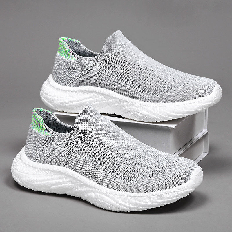 时尚蜘蛛王男鞋夏季透气一脚蹬黑色网鞋飞织网面运动跑步鞋休闲软