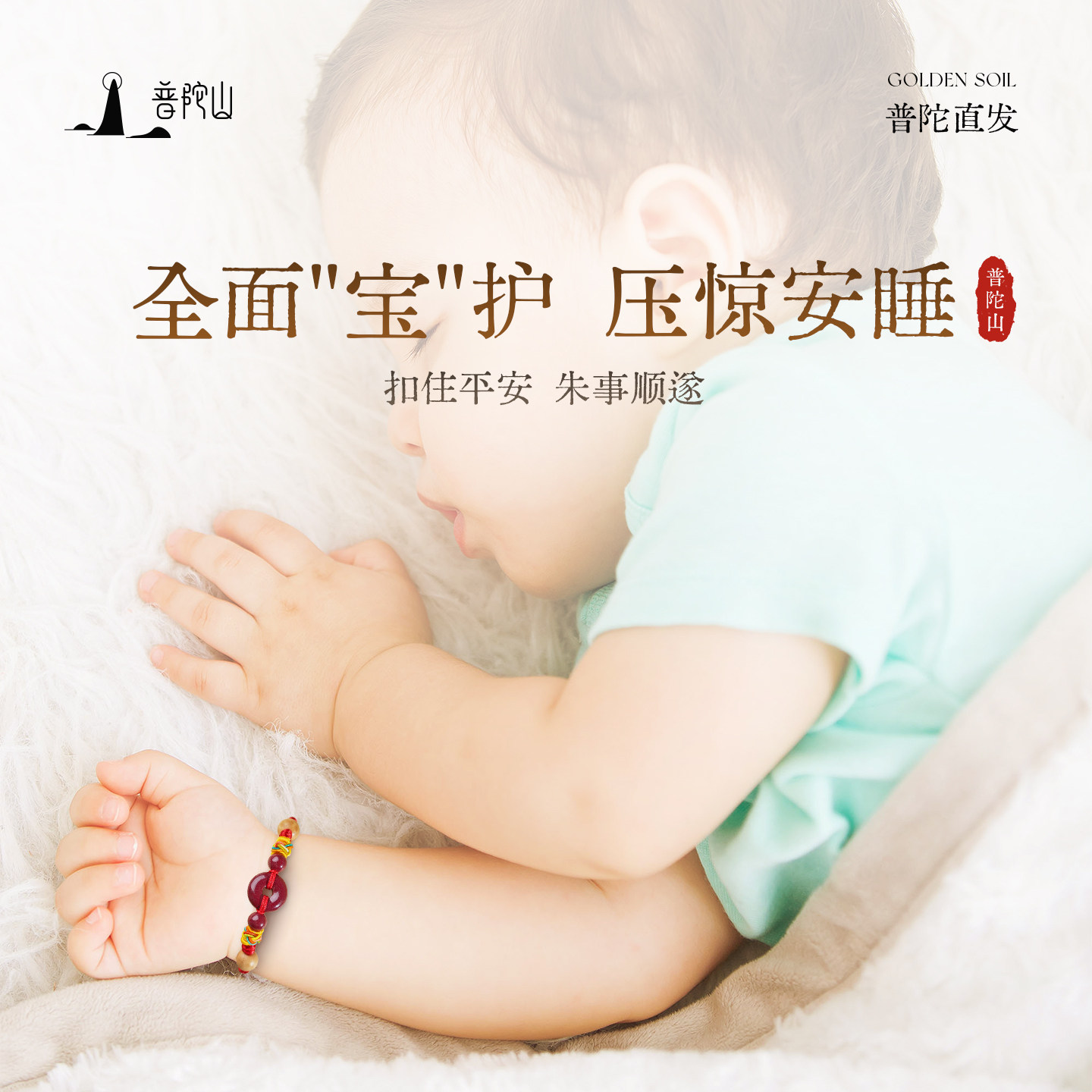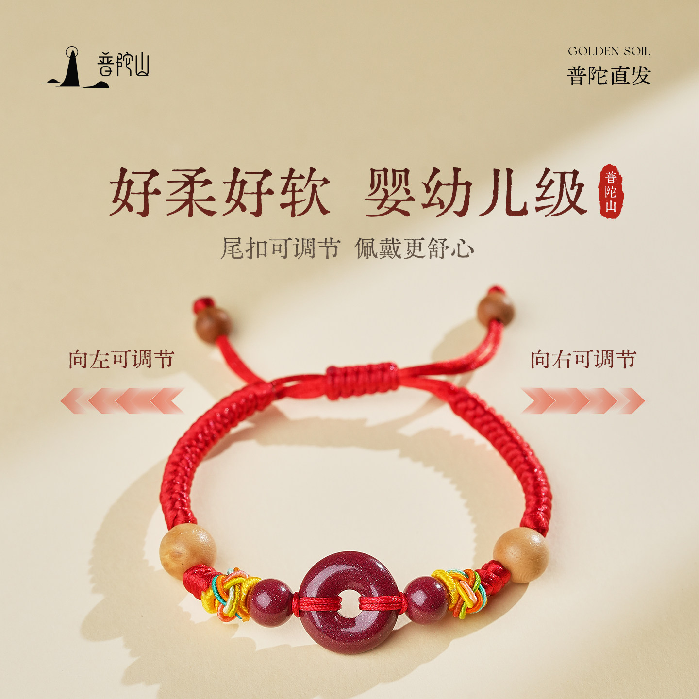 【普陀山旗舰】朱砂平安扣宝宝红绳儿童款编织手绳可调节平安手链