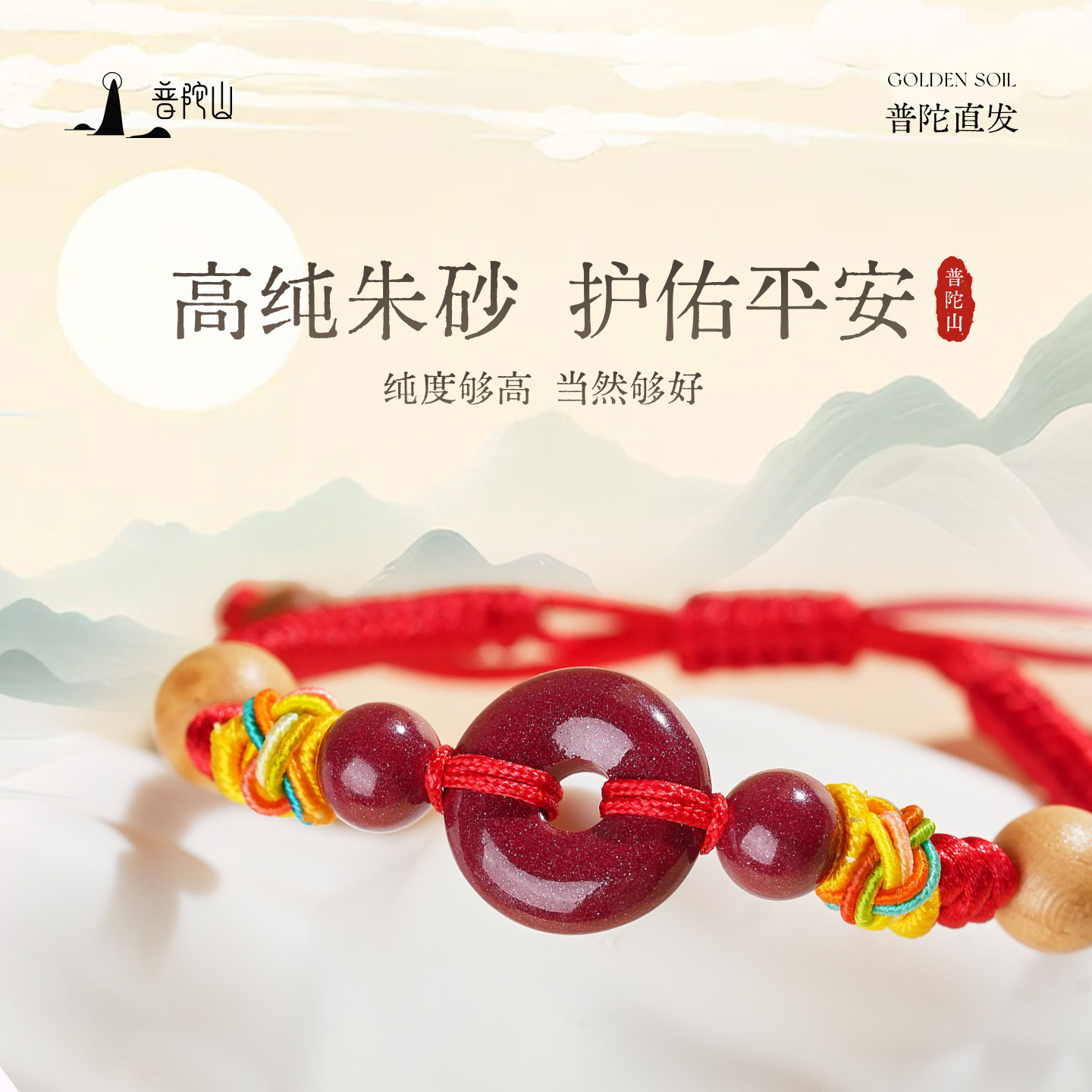 普陀山朱砂手串珠蛇年手链本命年普贤护身手镯官方旗舰店正品