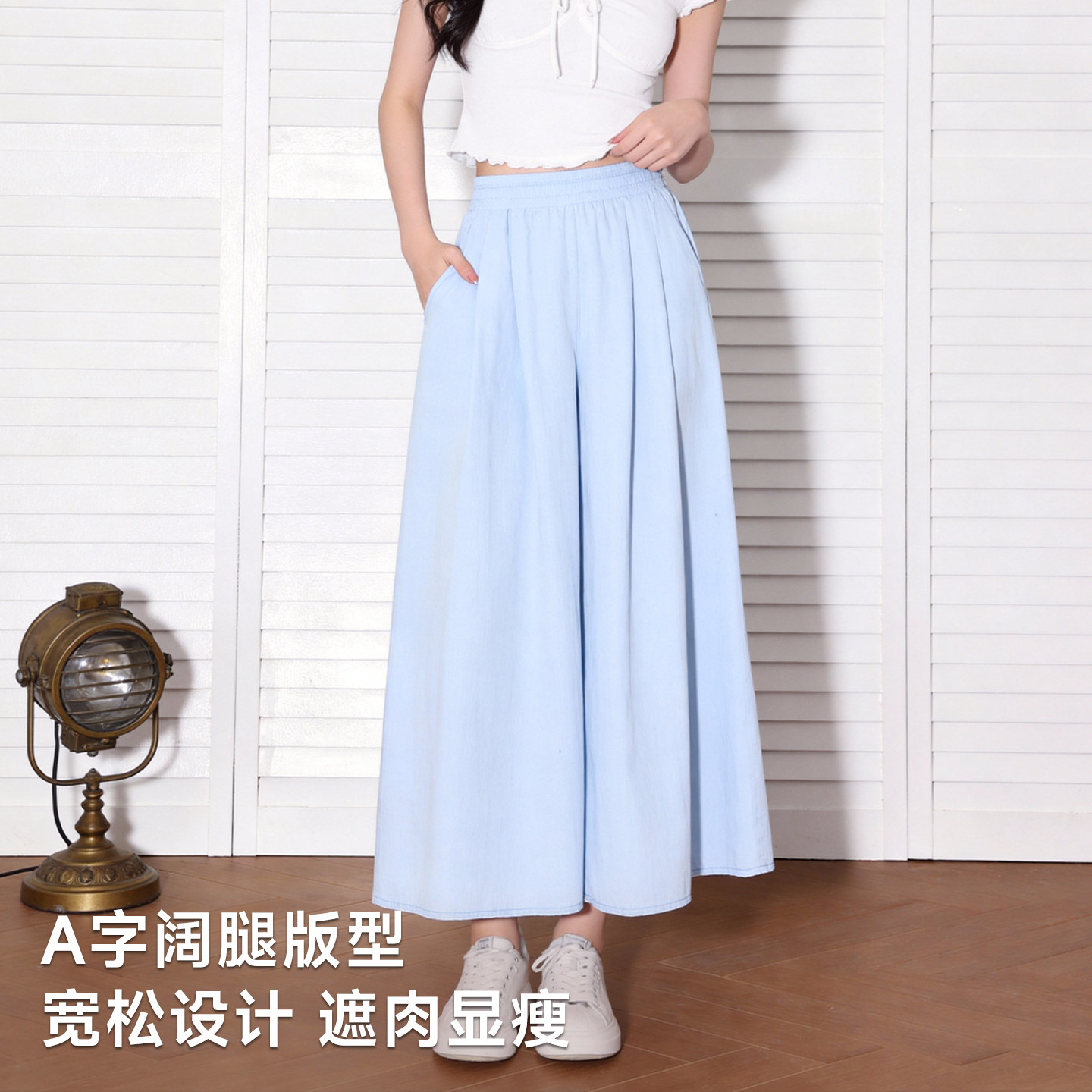 高腰垂感莫代尔宽松大码显瘦阔腿裤女夏百搭长裤坠感休闲裤直筒裤