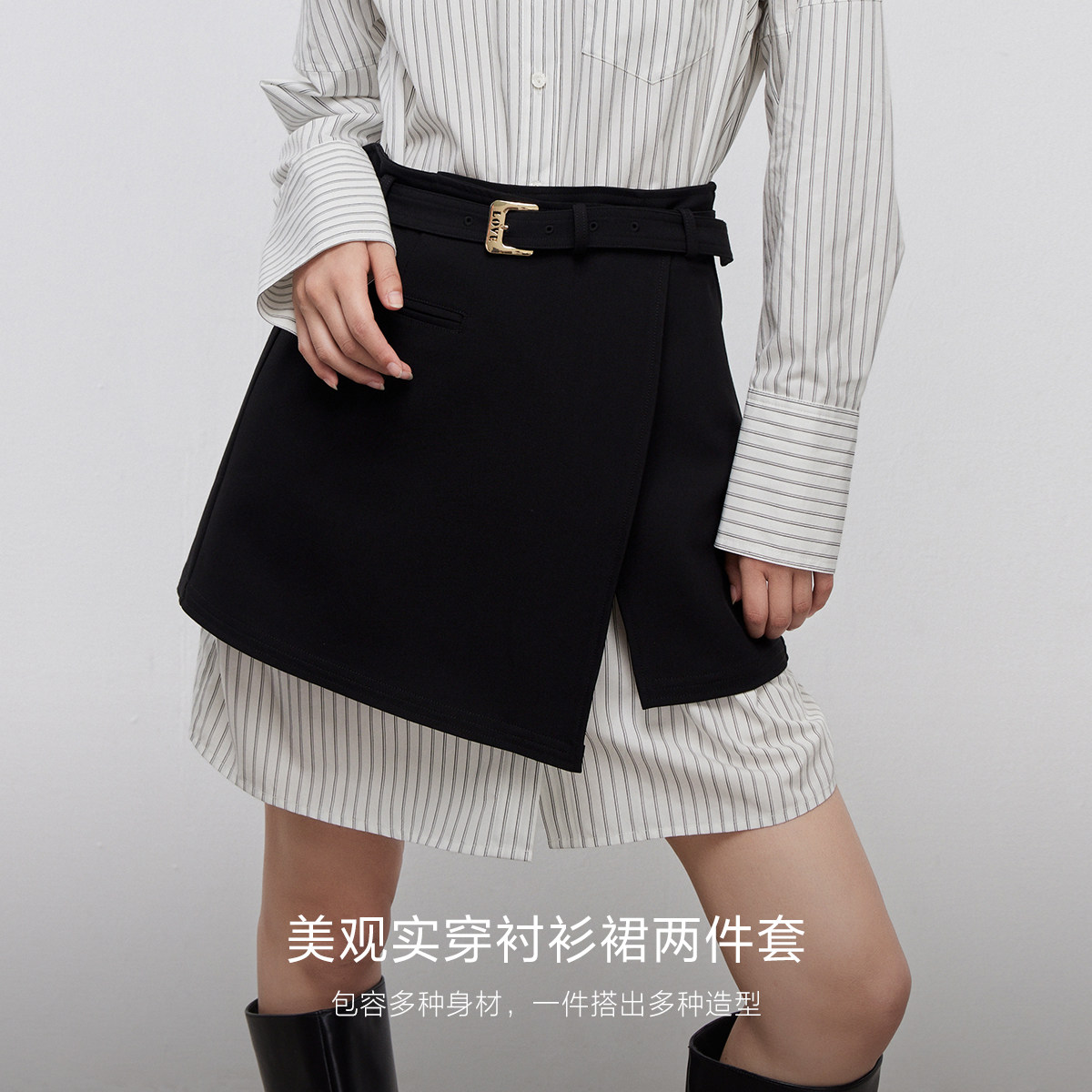 衬衫裙两件套 松弛舒适插肩袖 显瘦A字裙摆