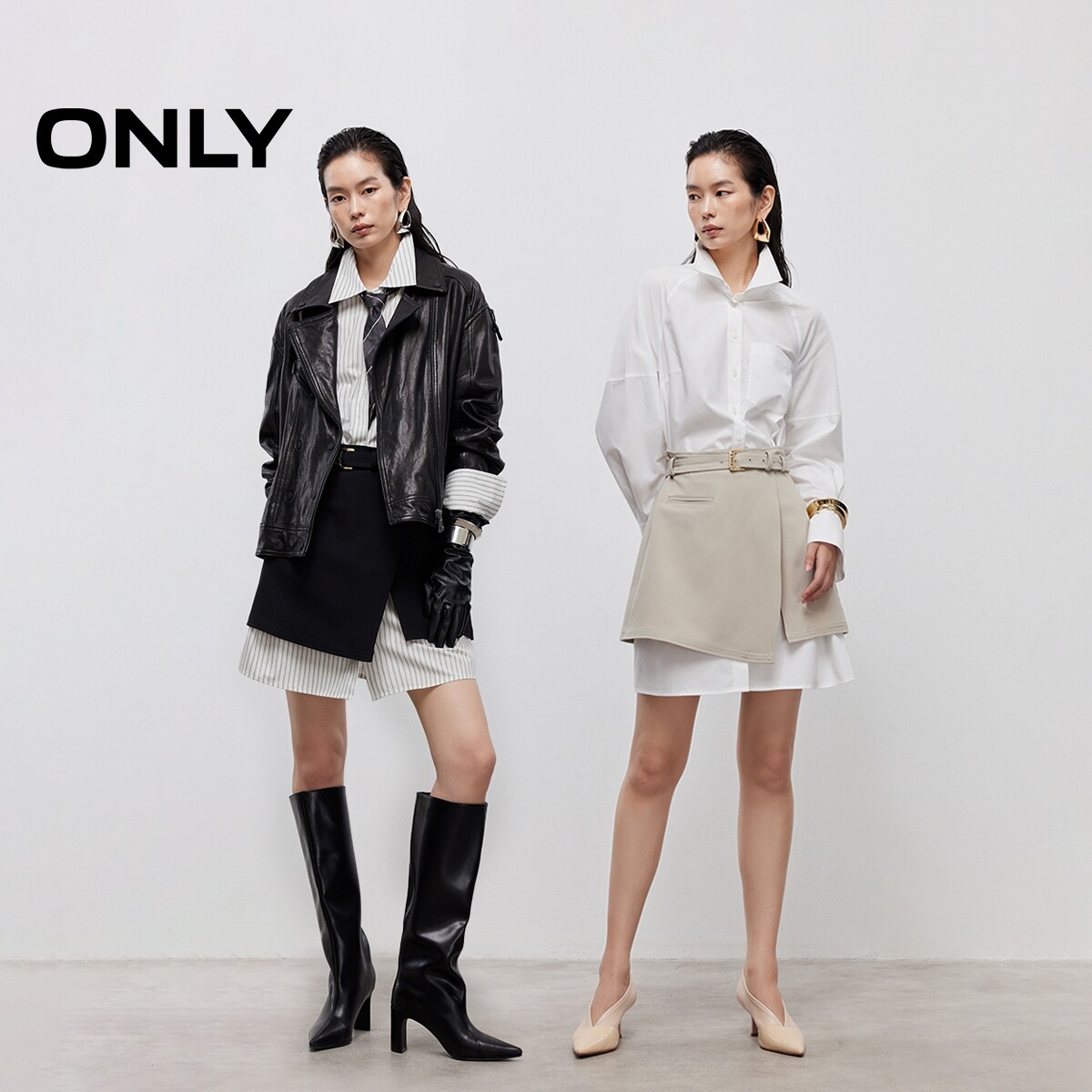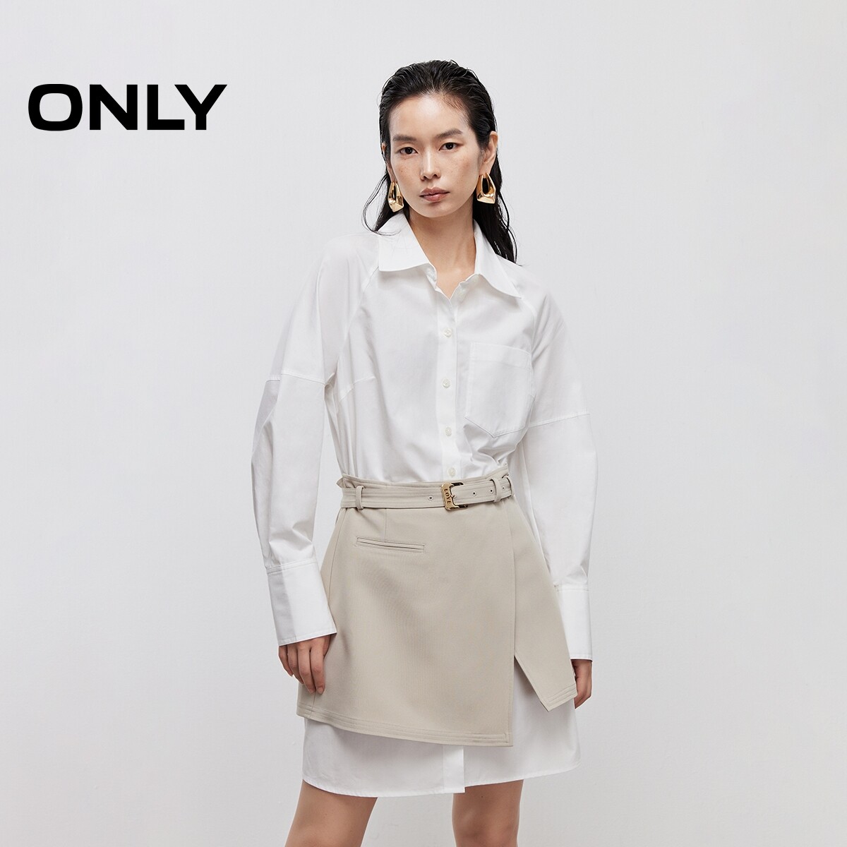 【ONLY奥莱】春季显瘦A字裙摆插肩袖套装短裙长袖衬衫裙连衣裙女