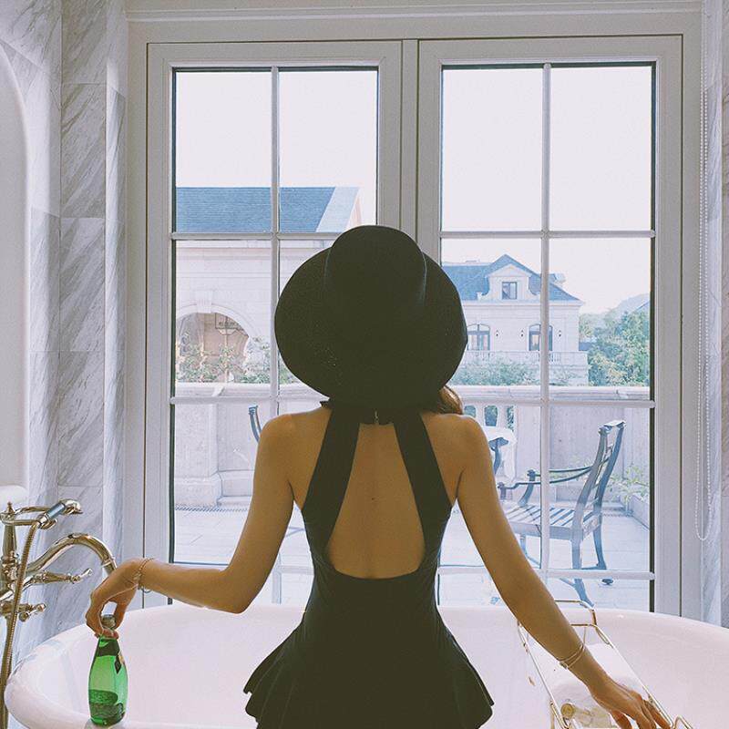 2025新款连体泳衣女裙式保守遮肚显瘦高级感露背性感泡温泉游泳装