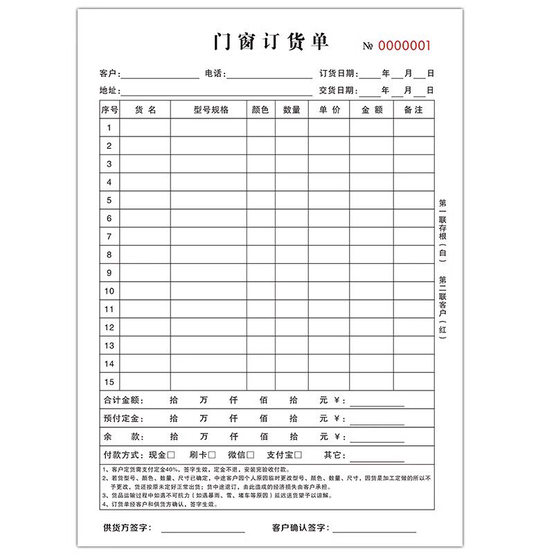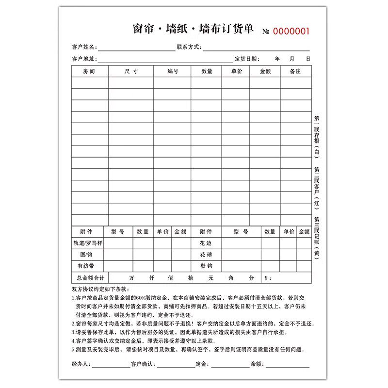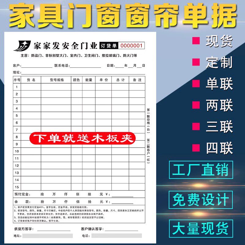 全屋定制订单本销售定货单据合同表家具订货单三联瓷砖石材窗帘门窗橱柜门业木门开单送货收据二联定销货清单