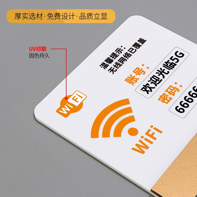 wifi提示牌密码墙贴无线网账号标识免费网络已覆盖温馨标志亚克力上网指示牌子酒店前台商场民宿创意贴纸定制