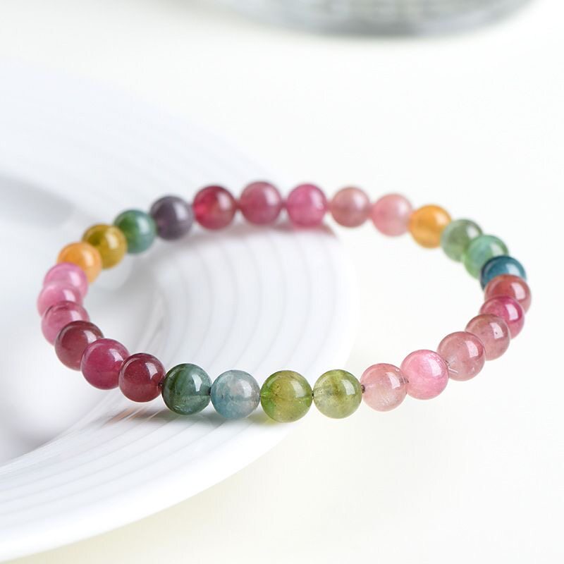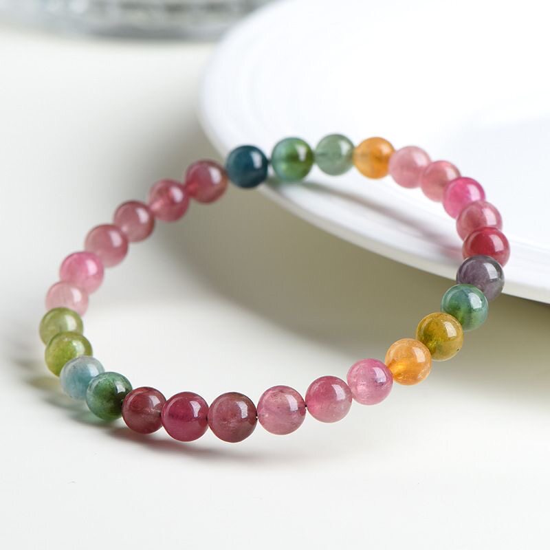 冰种马卡龙碧玺手链糯体彩虹碧玺水晶手链巴西七彩手串珠宝糖果