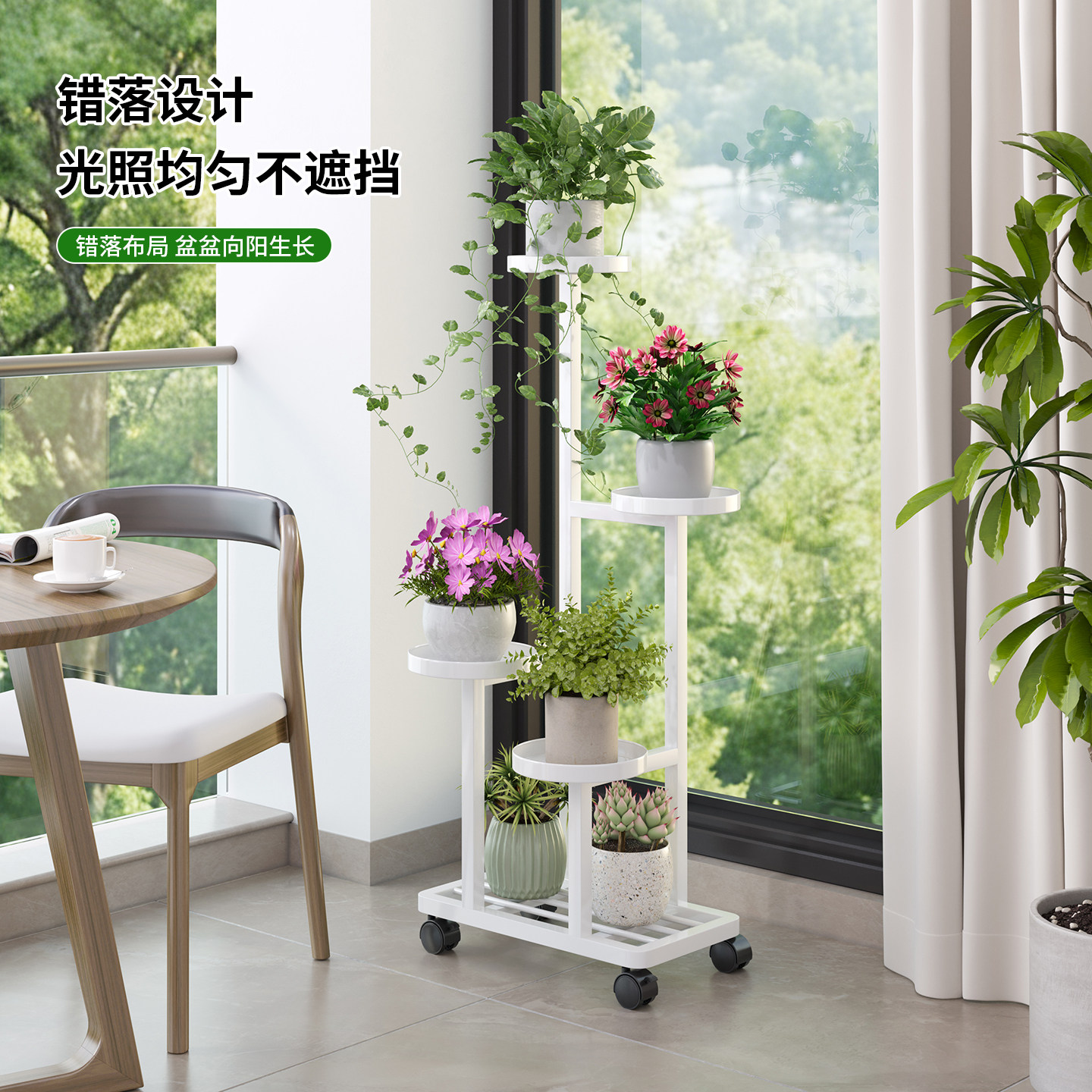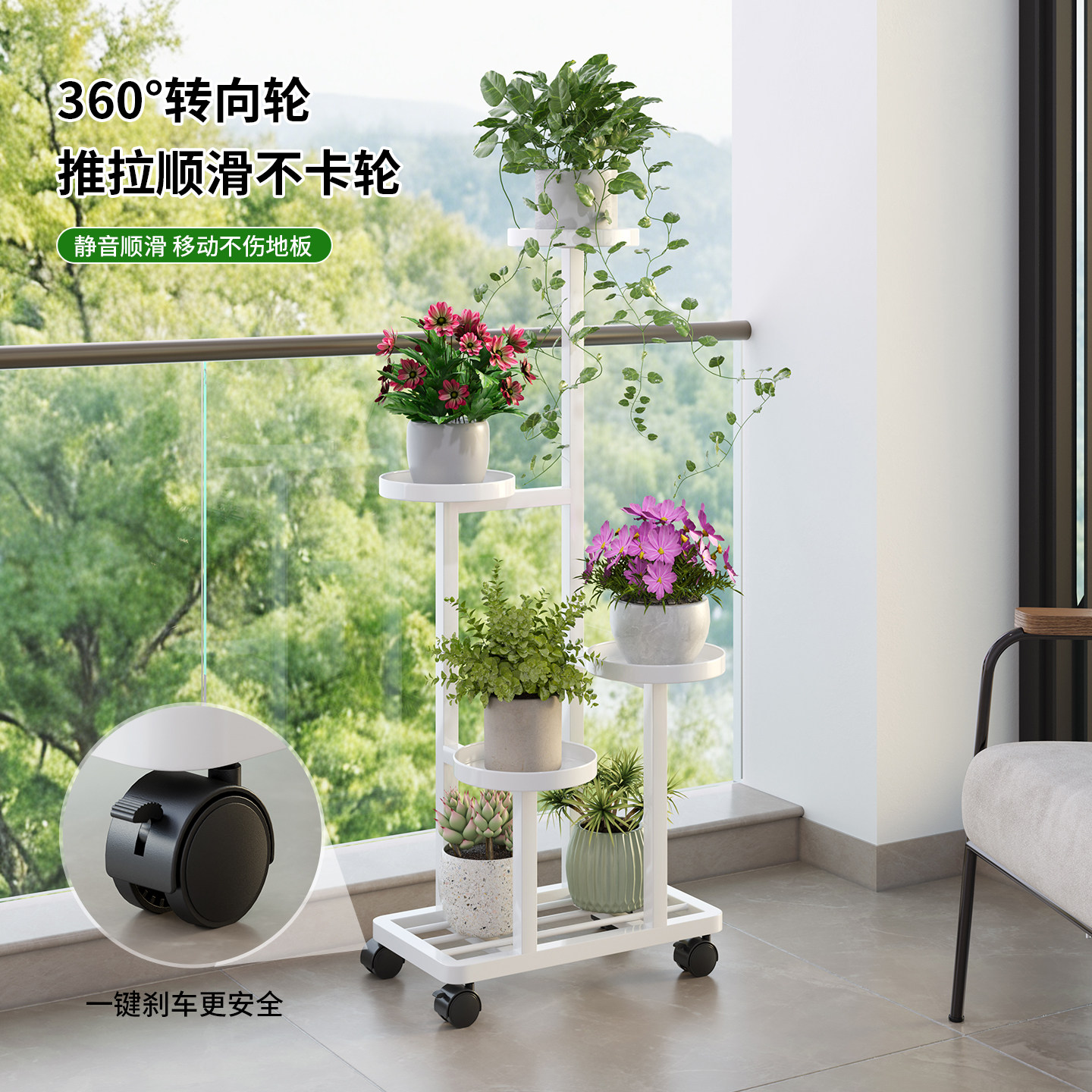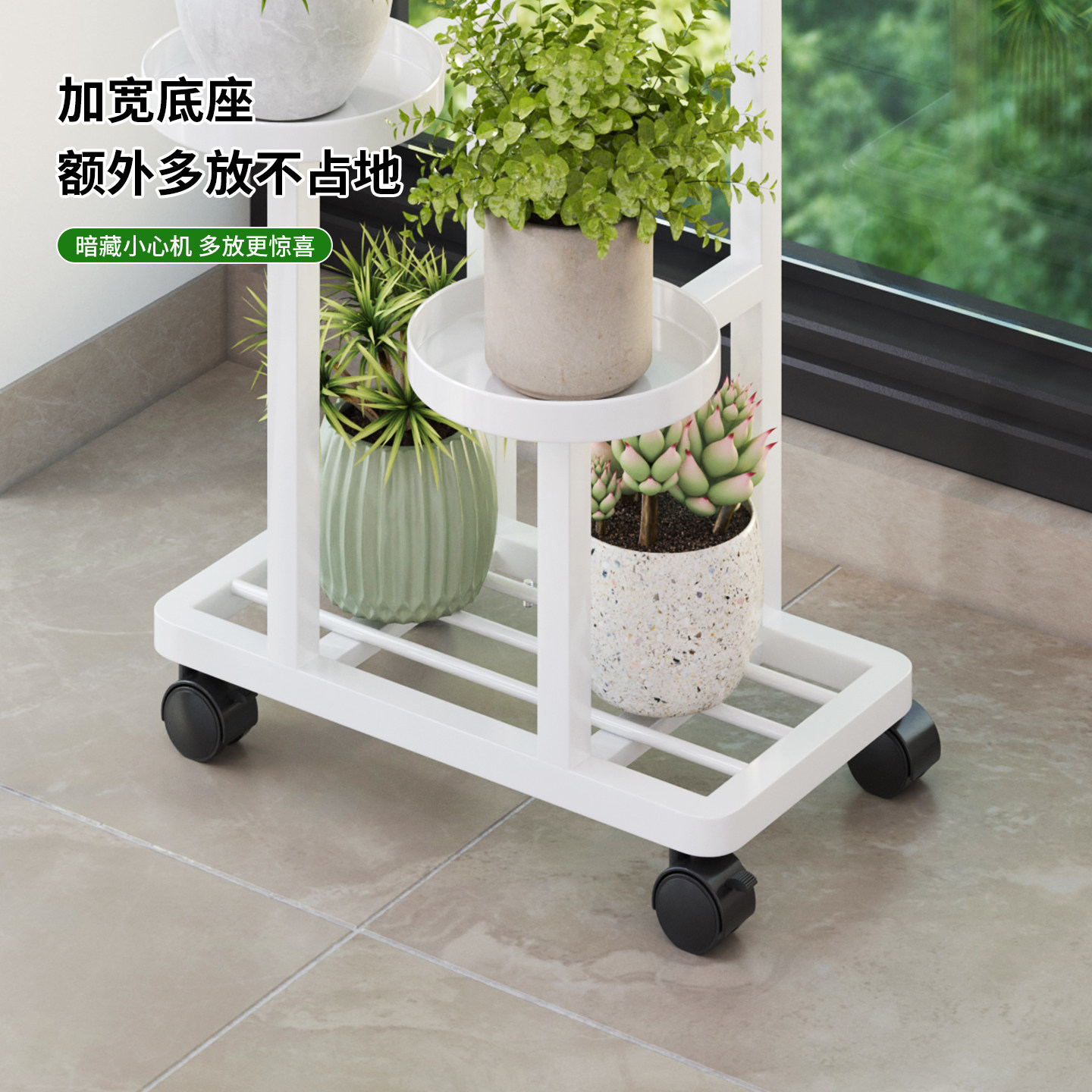客厅花架子铁艺室内落地式花盆架阳台花架植物置物架带轮可移动