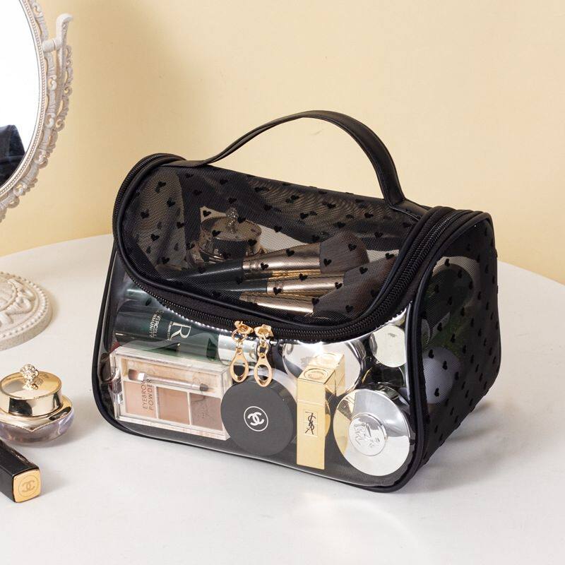 爱心弯包透明网纱新款便携ins洗漱手提大容量旅行收纳收纳袋清仓