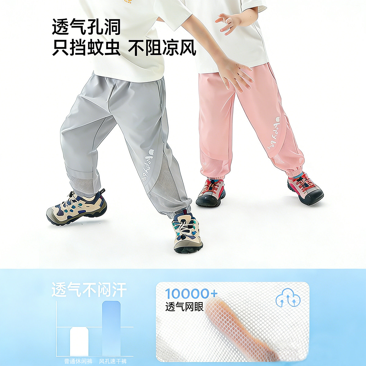 婧麒儿童防蚊裤男童裤子2026夏季新款薄款女童速干夏休闲运动长裤