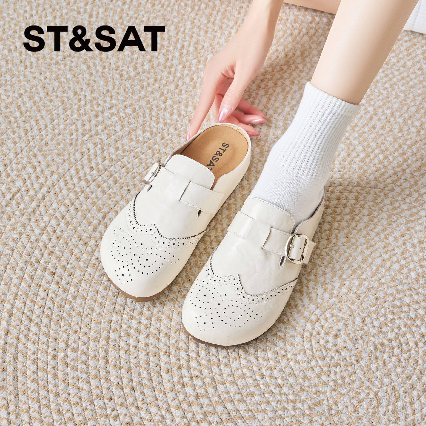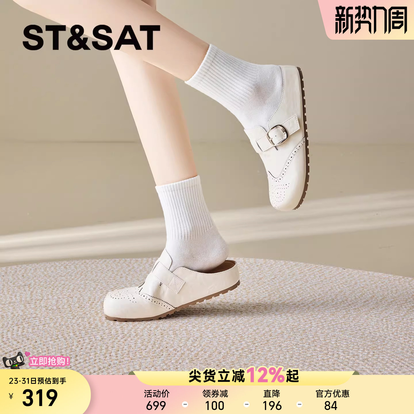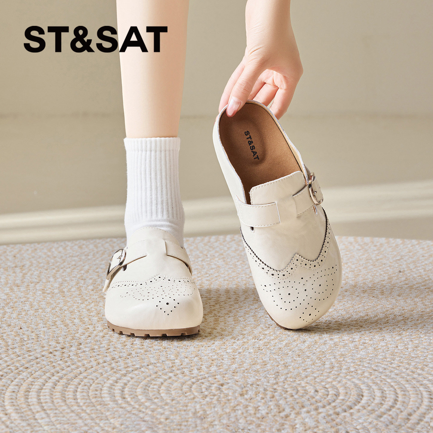 星期六休闲包头拖鞋外穿女夏季2026新款米白色懒人一脚蹬勃肯拖鞋