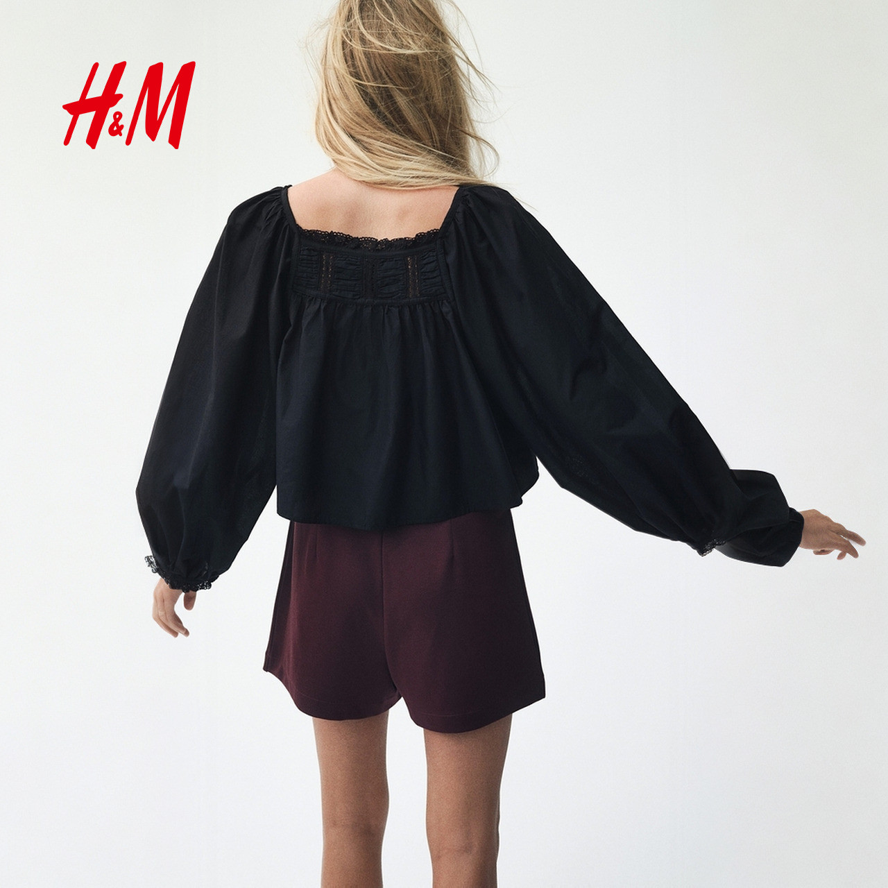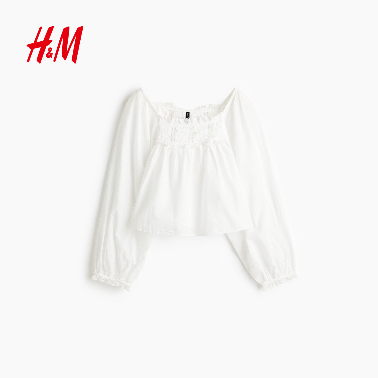 HM春季女装蕾丝边棉质上衣1315686