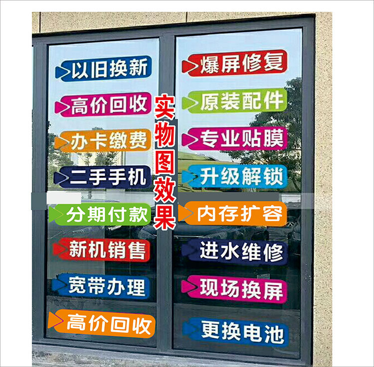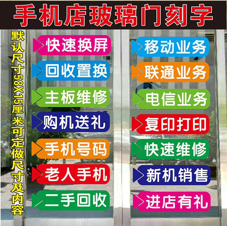 手机维修玻璃门广告贴纸店铺橱窗展示广告贴柜台贴纸即时贴刻字