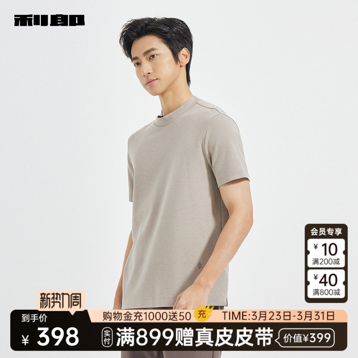 【商场同款】利郎官方 绵羊毛短袖T恤男士春秋款男装25QTX3051Y
