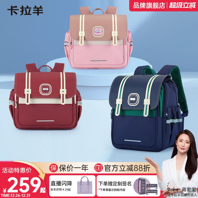 卡拉羊1-3-6年级小学生防下坠减负剑桥包女大容量双肩包男雅典学院
