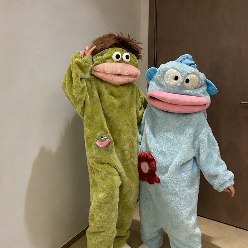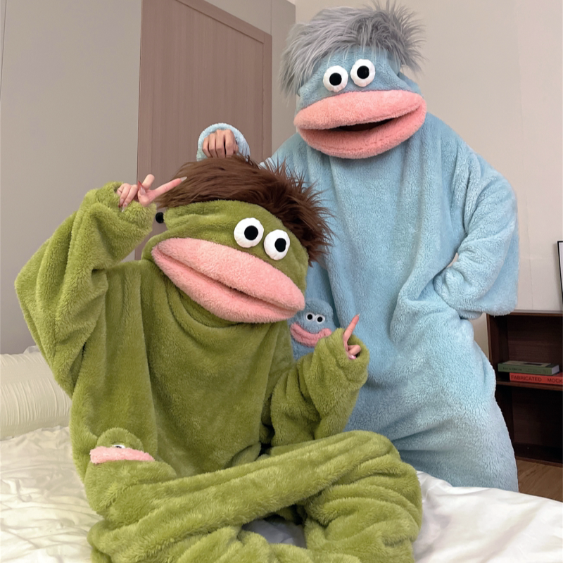 丑萌带大嘴怪睡衣家居服加绒保暖学生党抽象搞怪连体冬季可外穿
