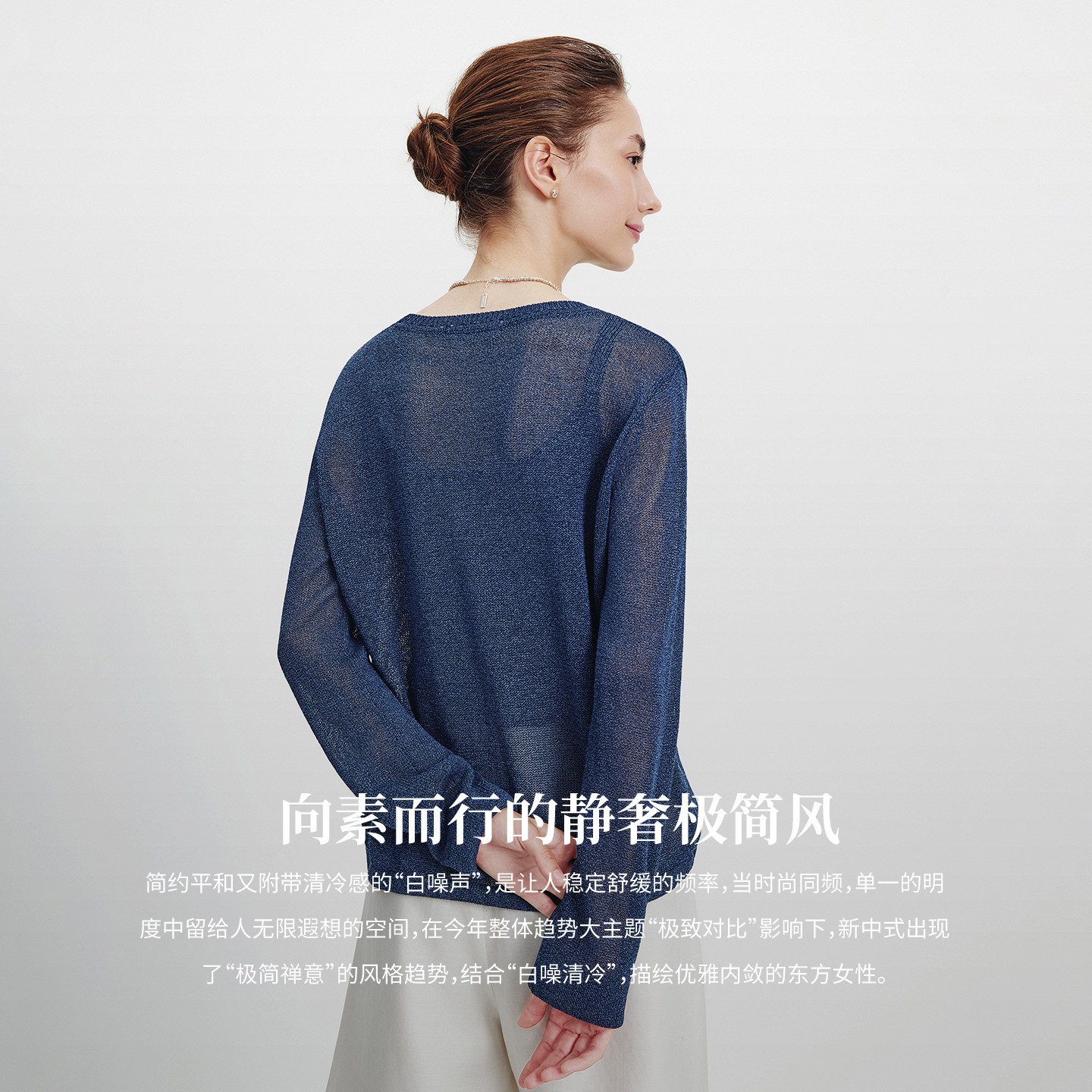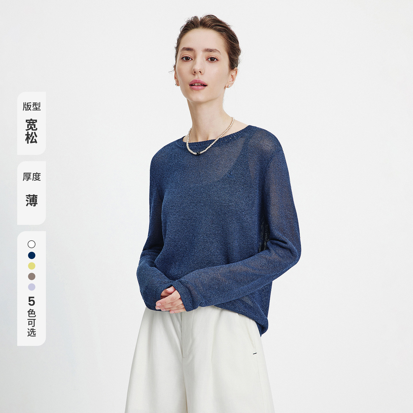 Navigare意大利小帆船圆领长袖针织衫女2026春季宽松薄款套头衫