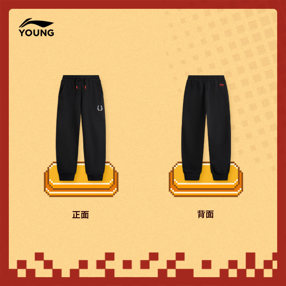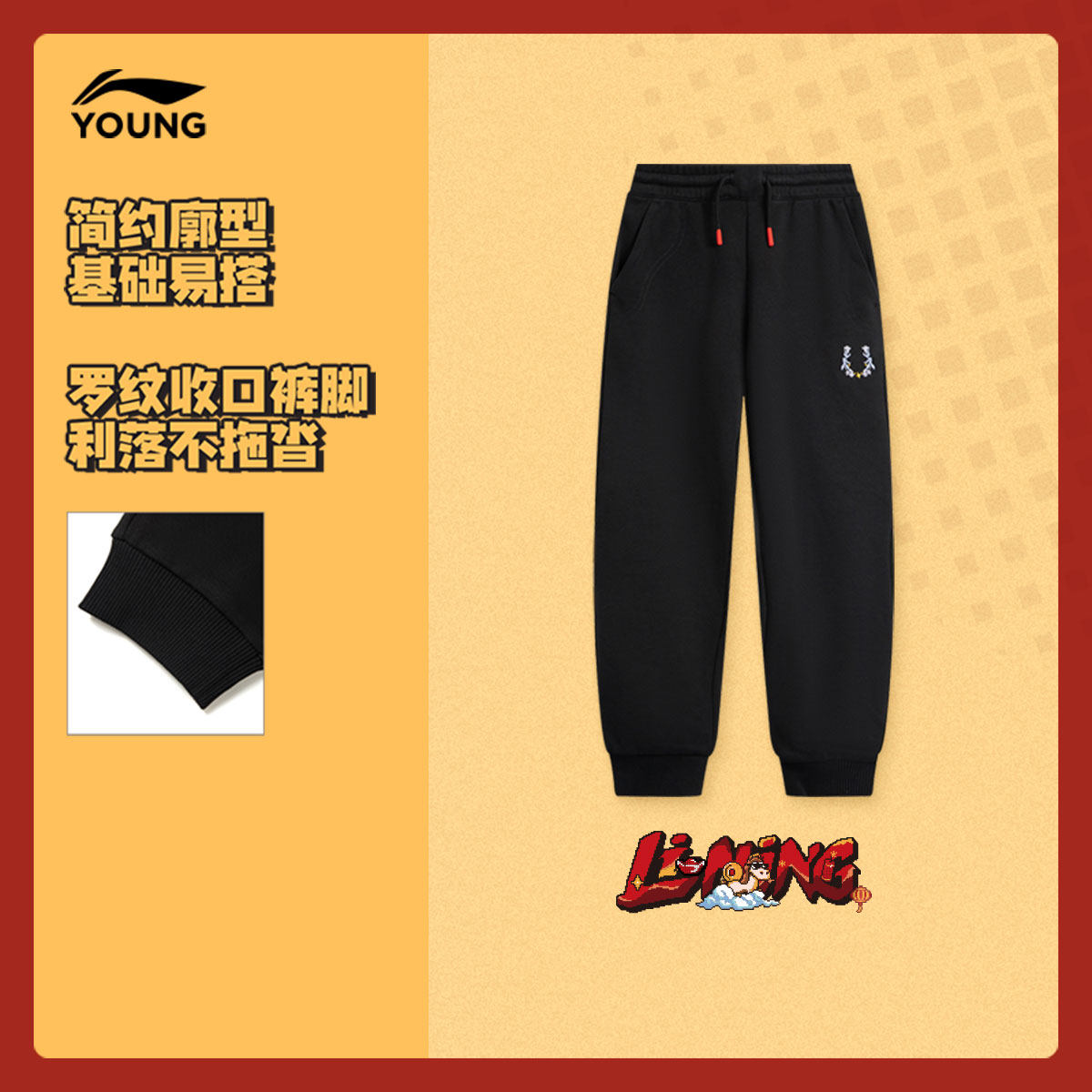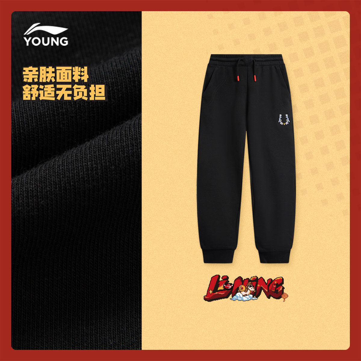 李宁童装卫裤女大童运动生活系列青少年春季休闲毛圈束脚针织童装
