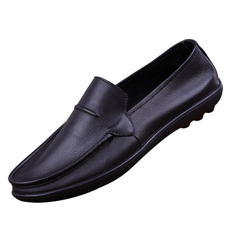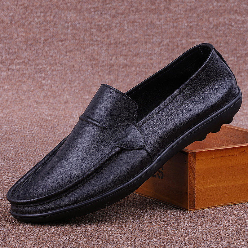 新款休闲皮鞋男真皮韩版潮流商务厚底轻质橡胶发泡底一脚蹬乐福鞋