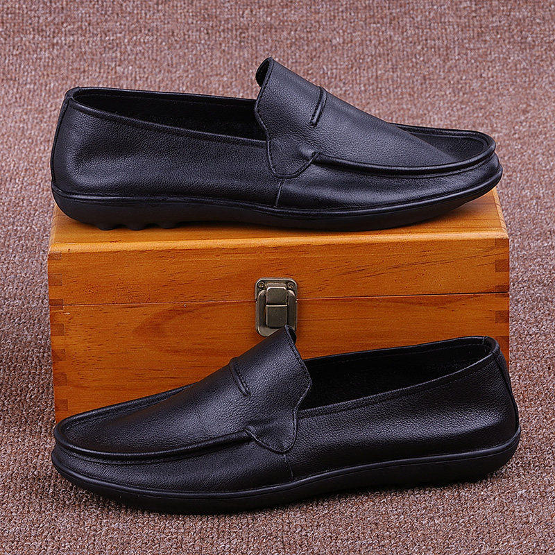 意尔康心选男鞋透气懒人鞋单层牛皮休闲男士皮鞋软底一脚蹬开车鞋
