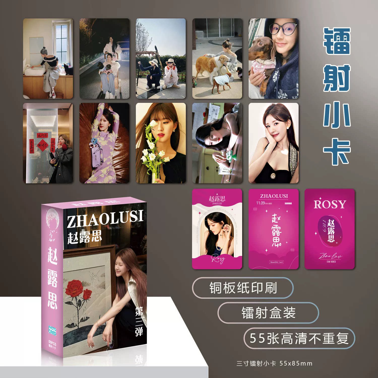 珠帘玉幕小卡赵露思刘宇宁周边3寸高颜韩式小卡镭射55张LOMO卡片