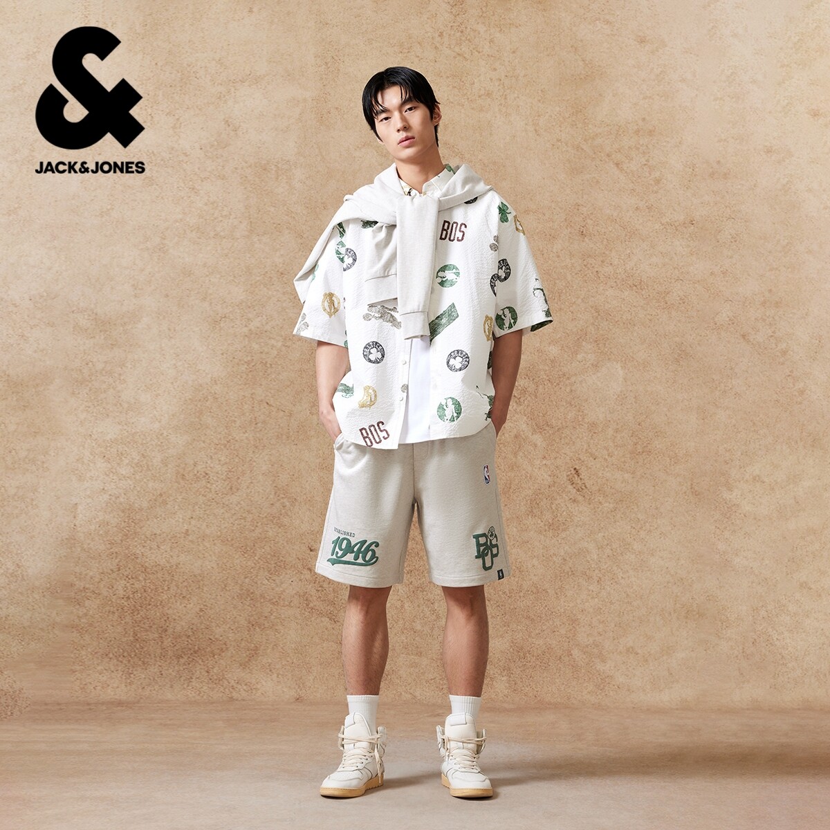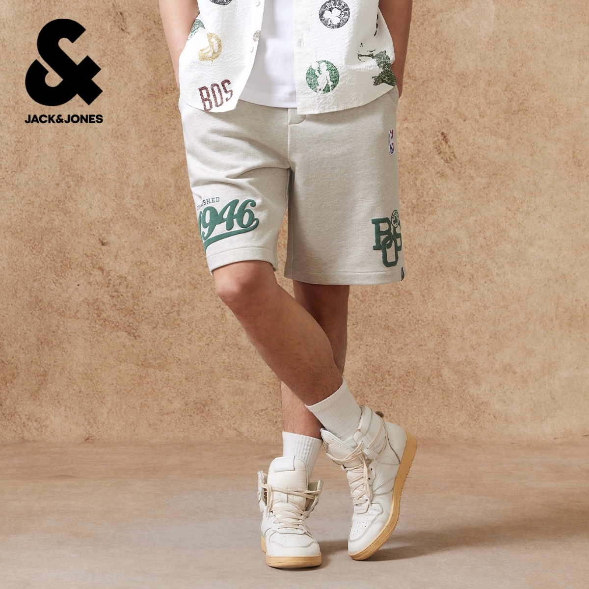【纯棉】杰克琼斯NBA联名夏季男装短裤宽松精致刺绣时尚百搭潮流