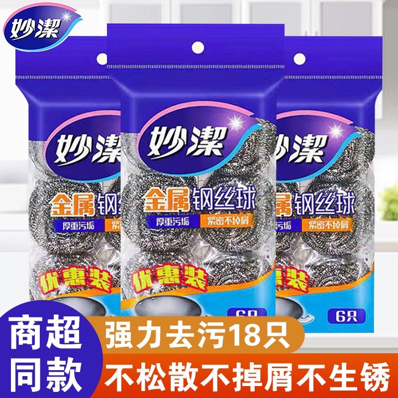 妙洁钢丝球家用清洁球不掉丝厨房洗碗布洗锅不锈钢铁丝球刷锅神器
