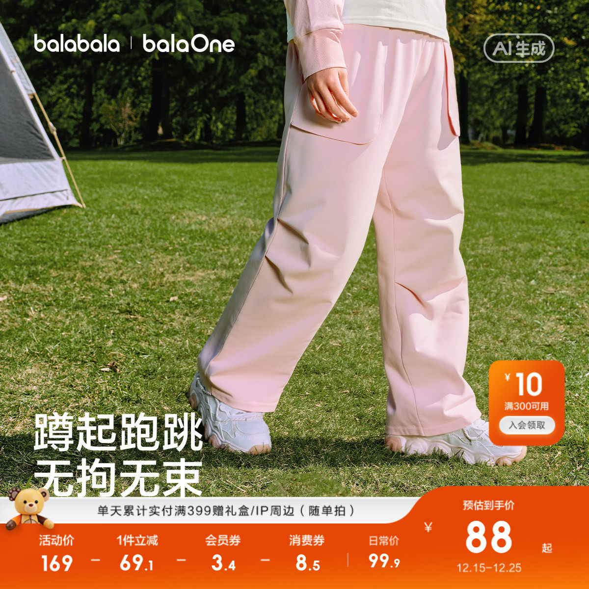 巴拉巴拉童装儿童裤子男童2026春装新款女童耐磨防水户外运动长裤