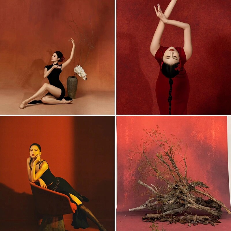 现货直发红色拍摄背景布肖像宣绒布写真春节喷绘拍照摄影背景纸