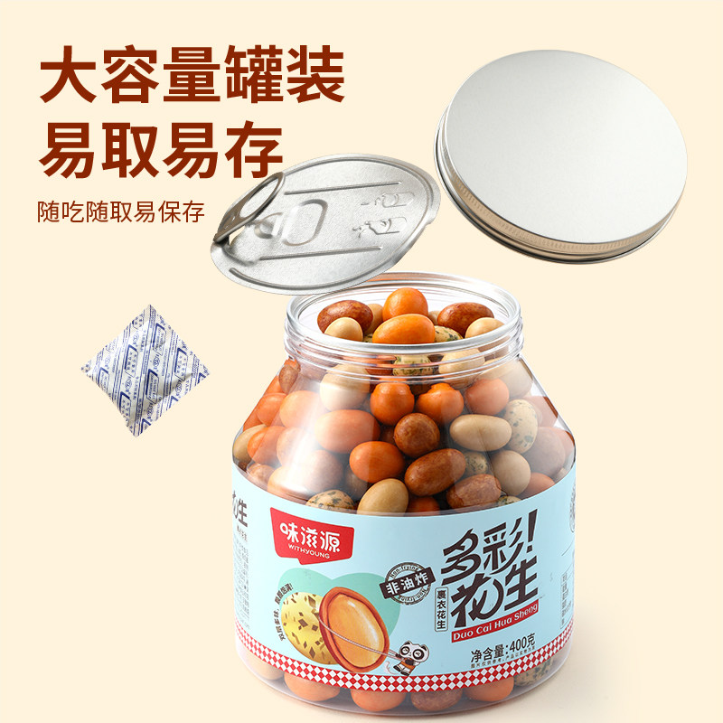 味滋源多彩花生非油炸酥脆裹衣花生仁400g罐装