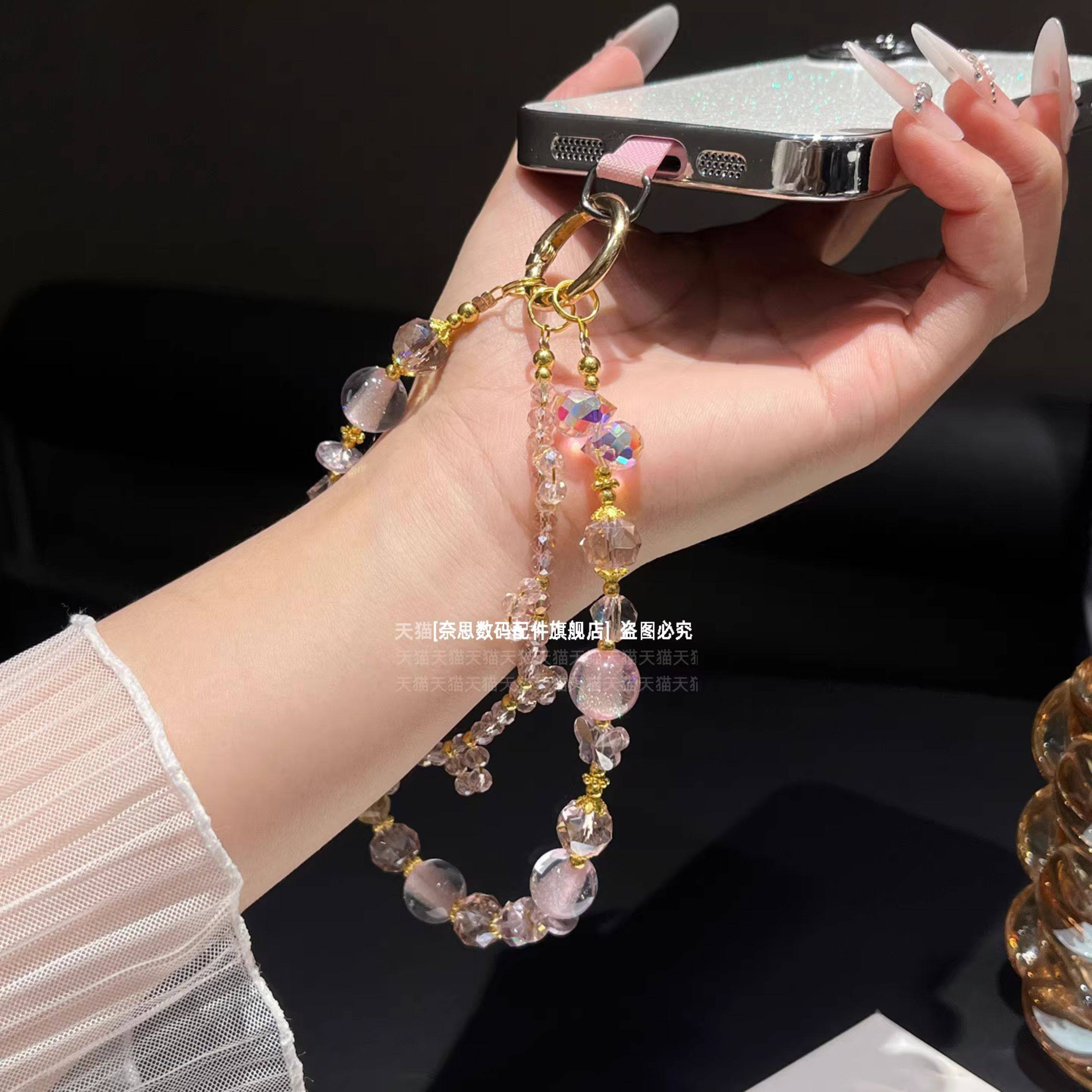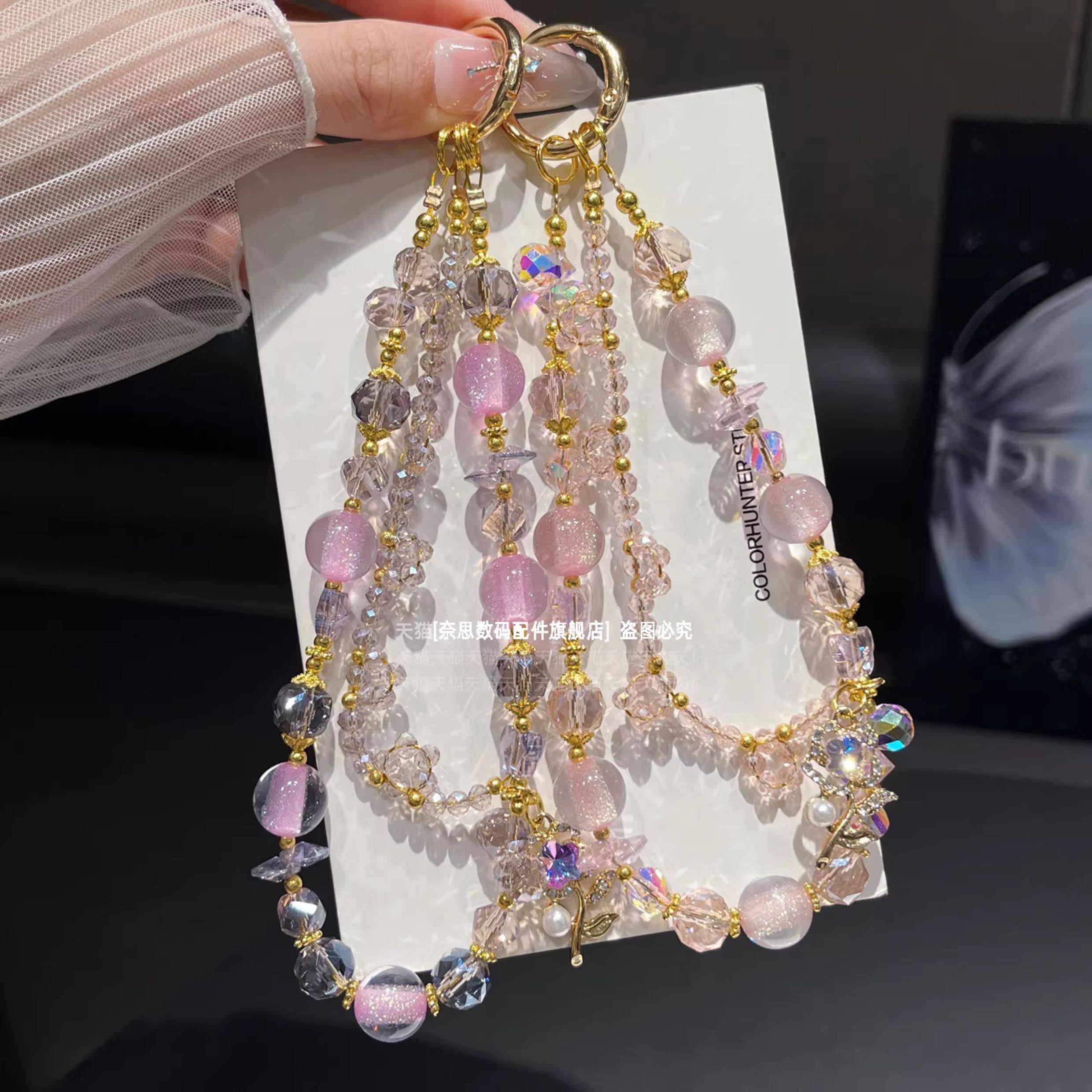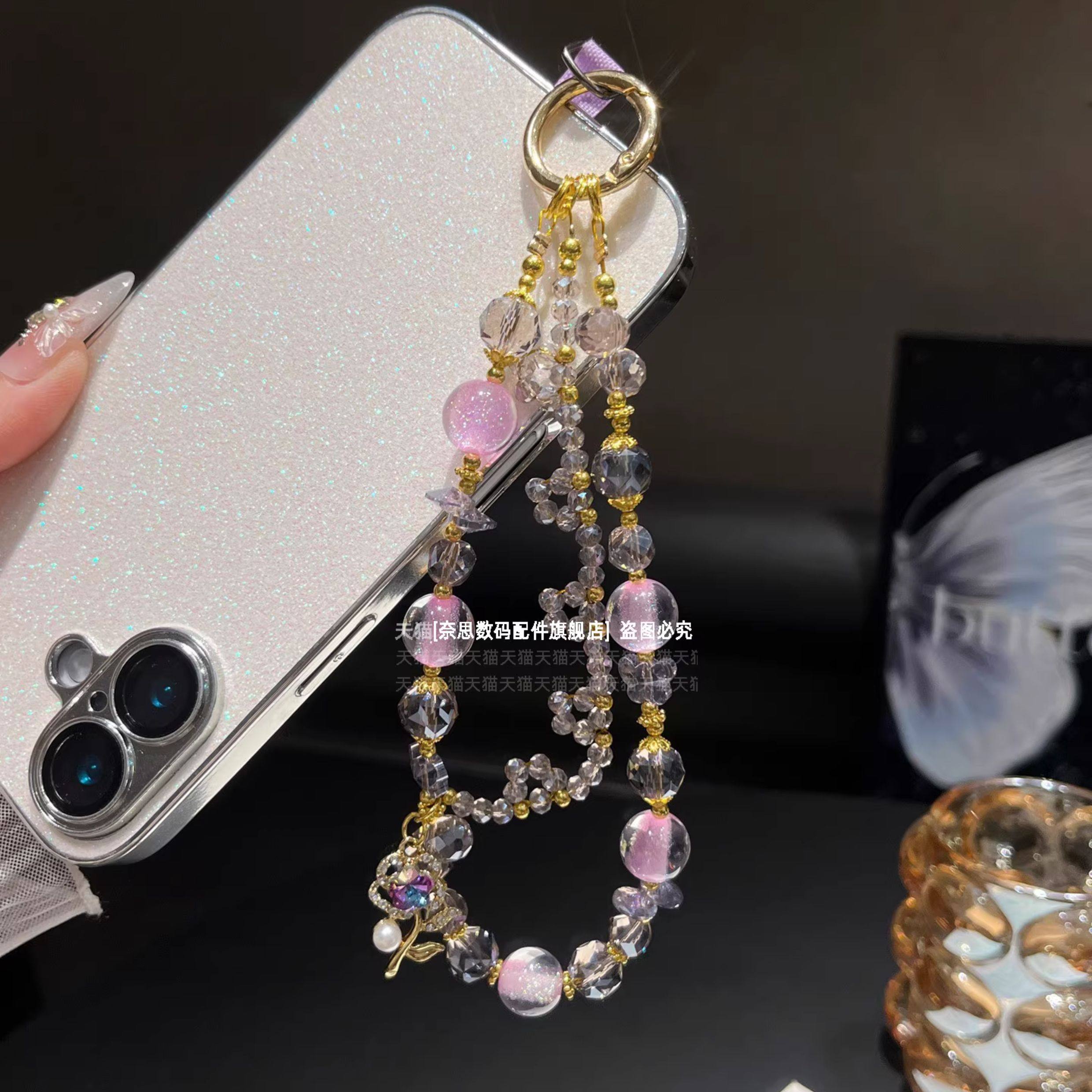 爆闪布灵布灵手机链精致奢华水晶挂链气质女神高级感挂手腕链条粉紫色手工串珠手链高颜值挂饰防丢包包钥匙壳