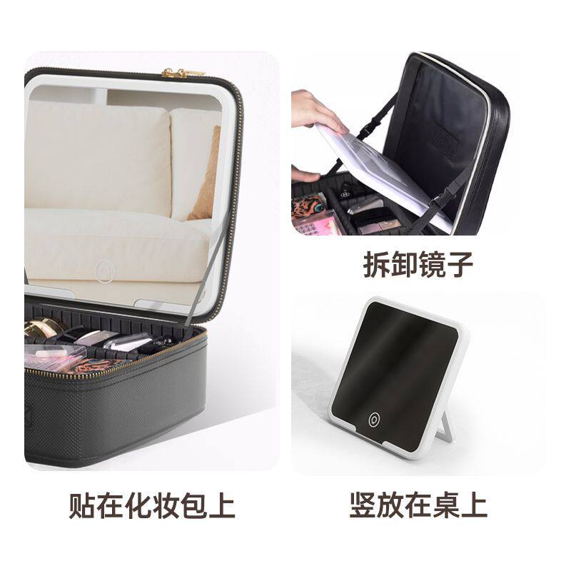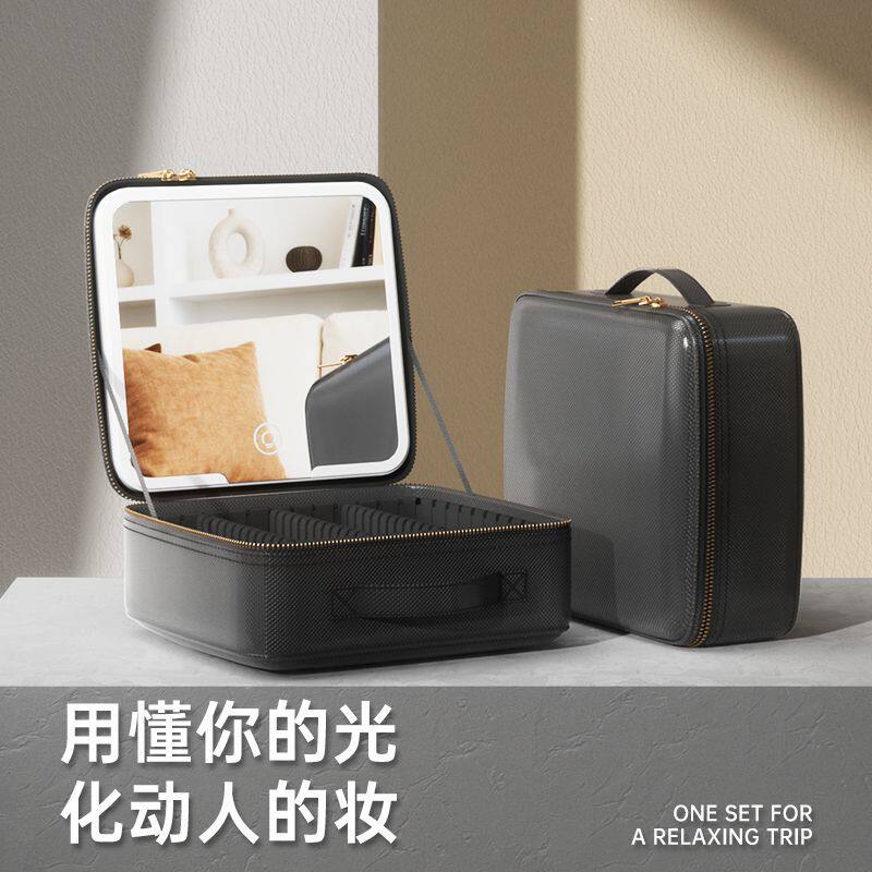 高端LED收纳包手提旅行便携化妆箱一体大容量镜子专业新款化妆包