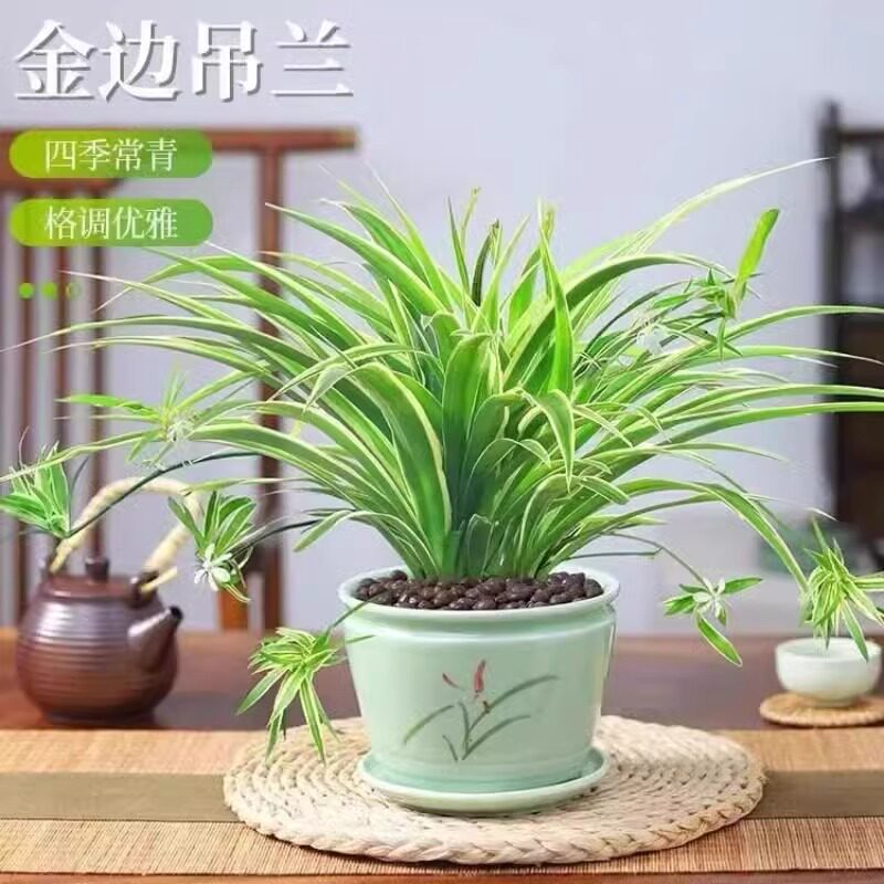 金边吊兰盆栽花卉植物室内阳台净化空气小绿植水培办公桌耐阴