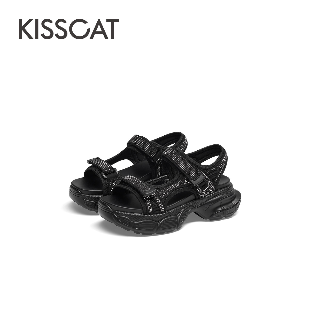 KISSCAT接吻猫夏季舒适沙滩厚底增高凉鞋气质休闲运动凉鞋女