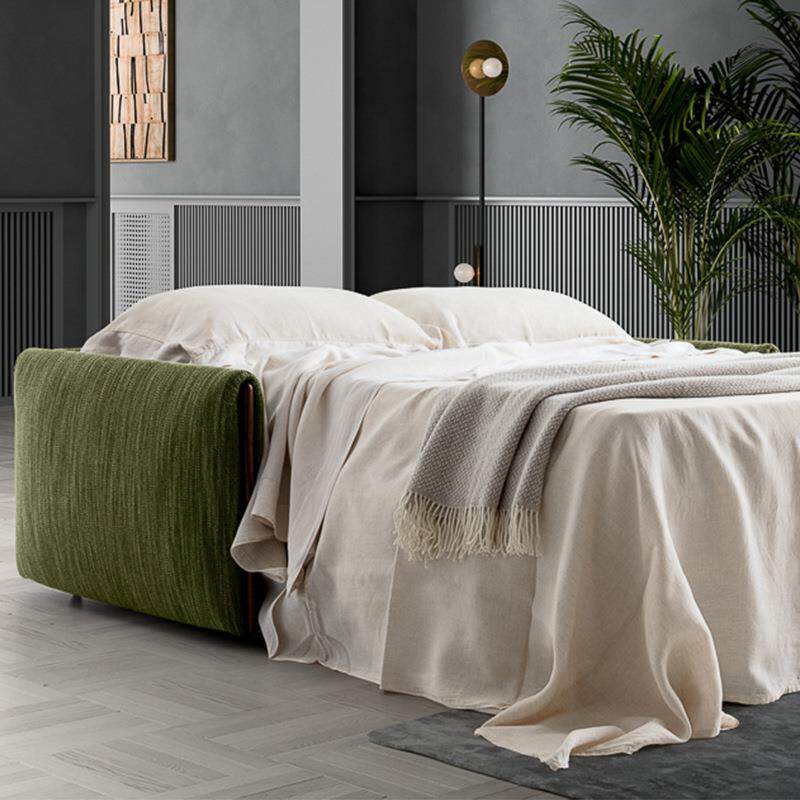 意式轻奢复古多功能沙发床布艺沙发小户型客厅雪尼尔绿色直排沙发