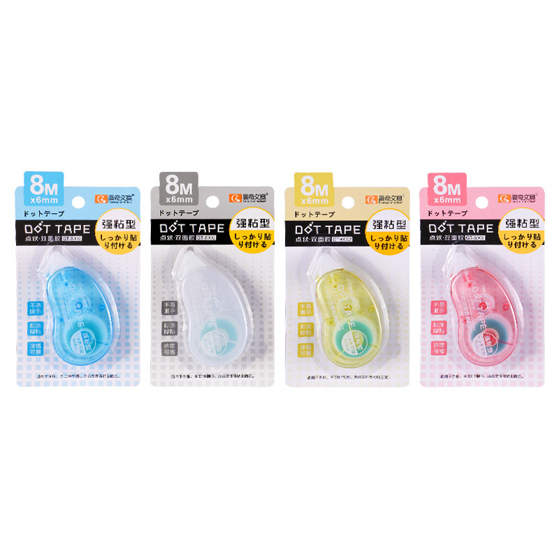 晨奇大容量点点胶少女心淡彩透明点状手工双面胶修正带式学生用高粘度两面胶带手账贴纸胶粘用品小学生专用