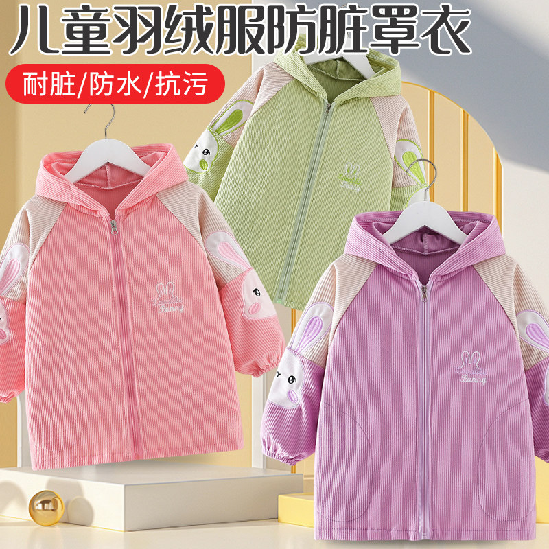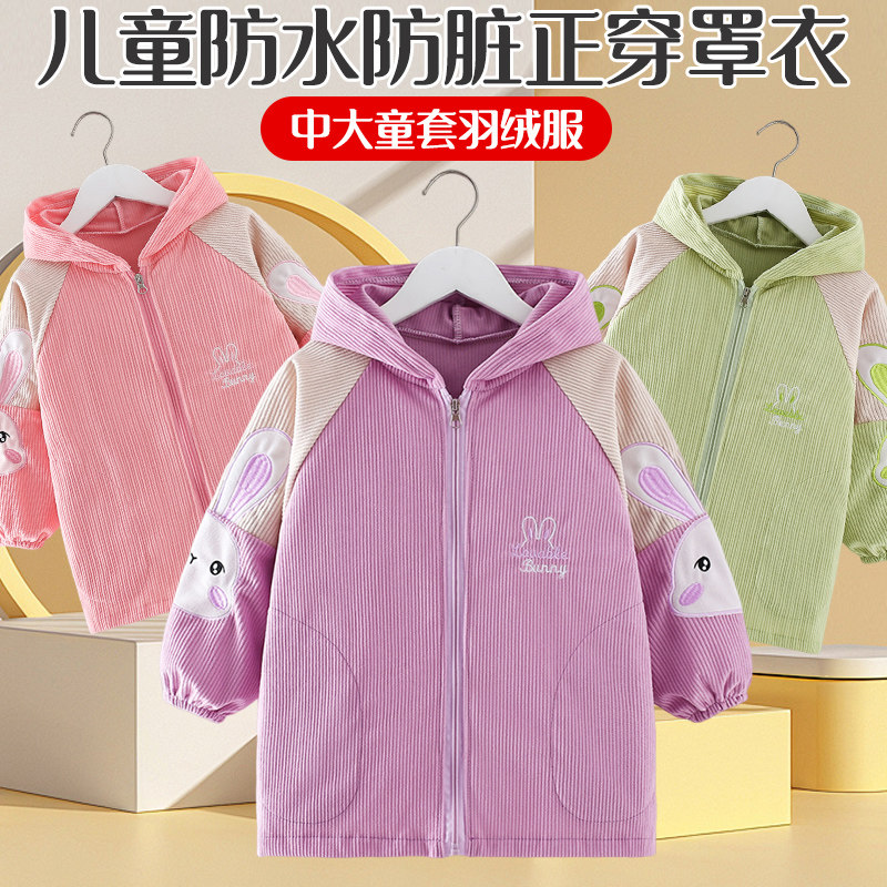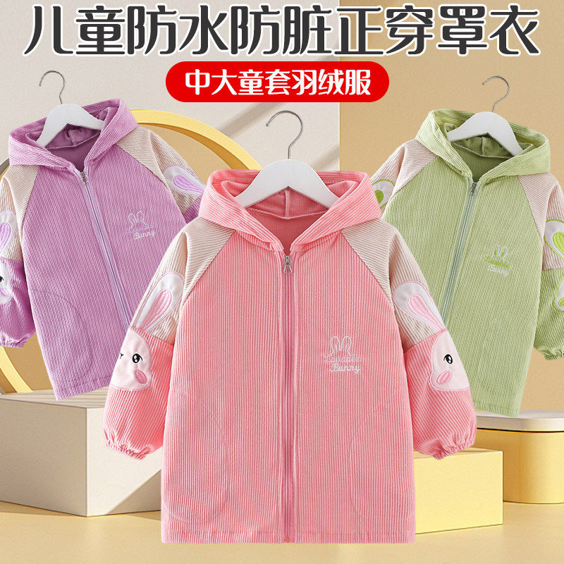 儿童羽绒服罩衣宝宝防脏外套小孩秋冬外穿洋气大童正穿衣防水吃饭