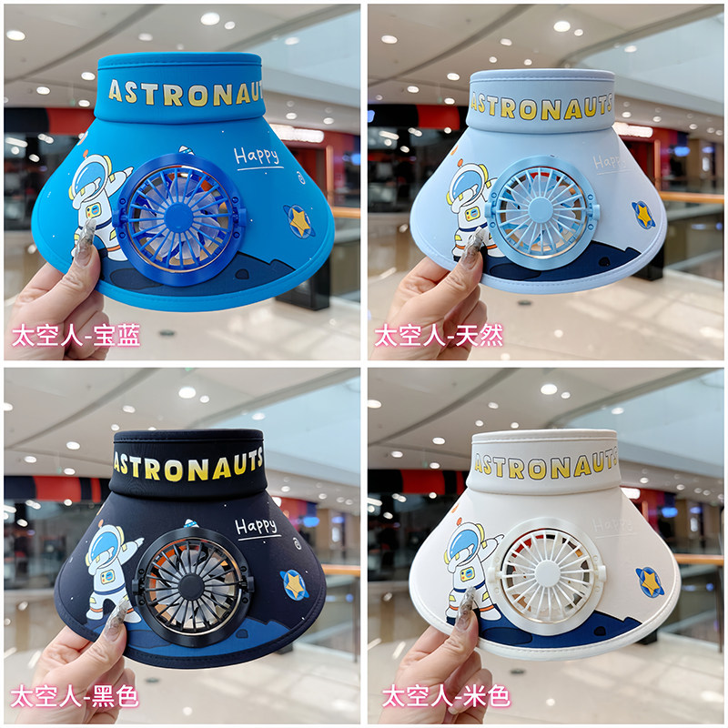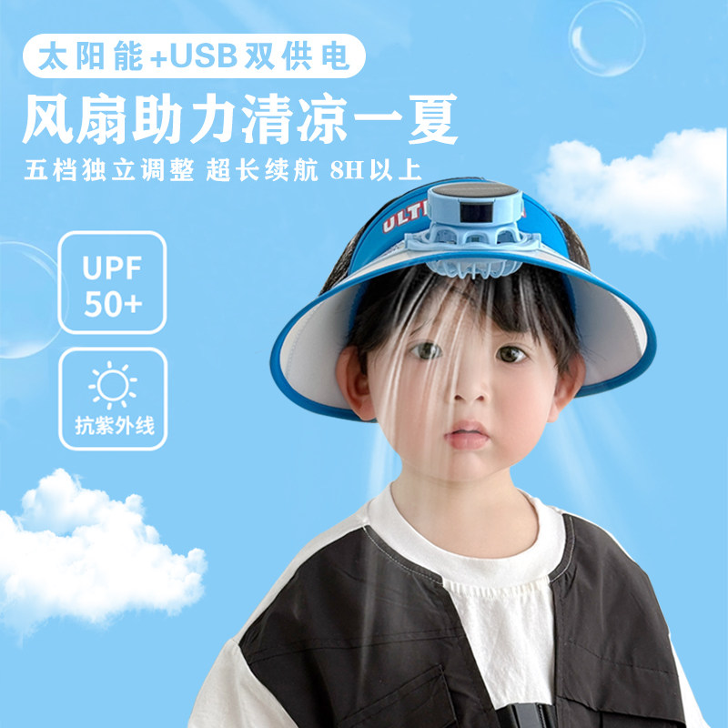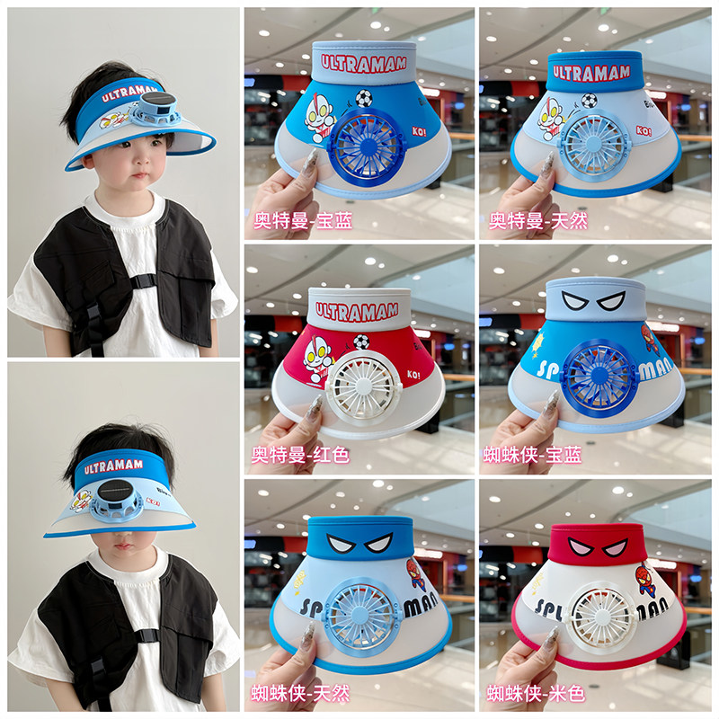 奥特曼儿童帽子太阳能风扇帽中大童夏季大帽檐防紫外线防晒遮阳帽