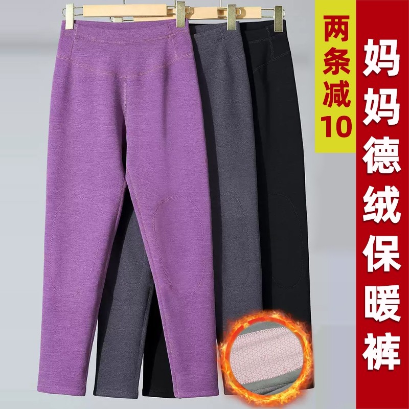 妈妈裤子秋冬季秋裤德绒护膝棉裤保暖裤女中老年内穿打底裤加绒裤