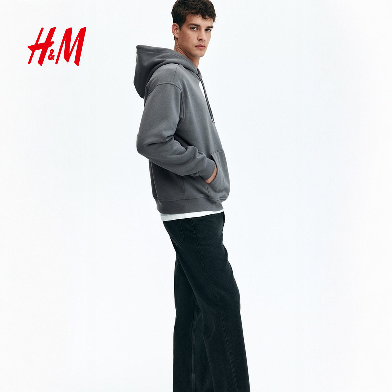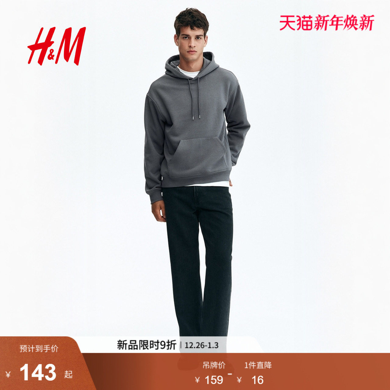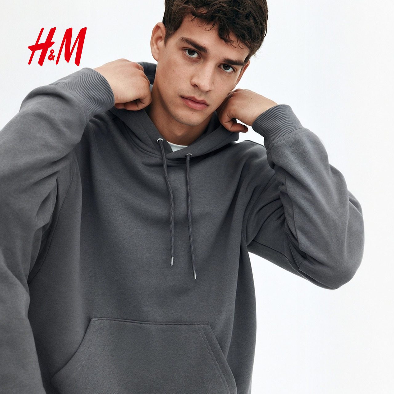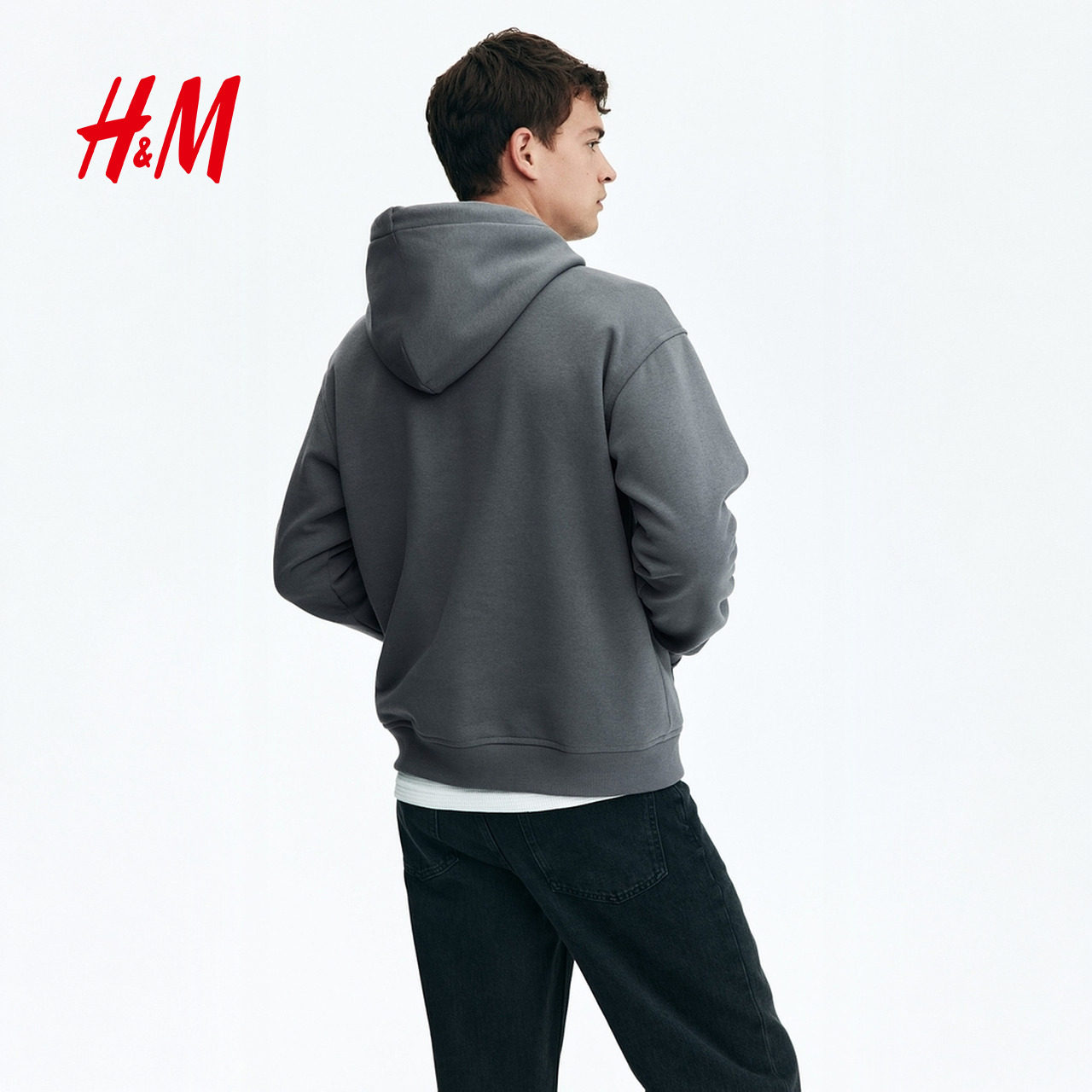 HM男装卫衣冬季舒适简约纯色柔软连帽长袖上衣0970819