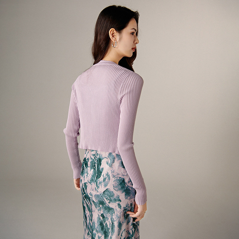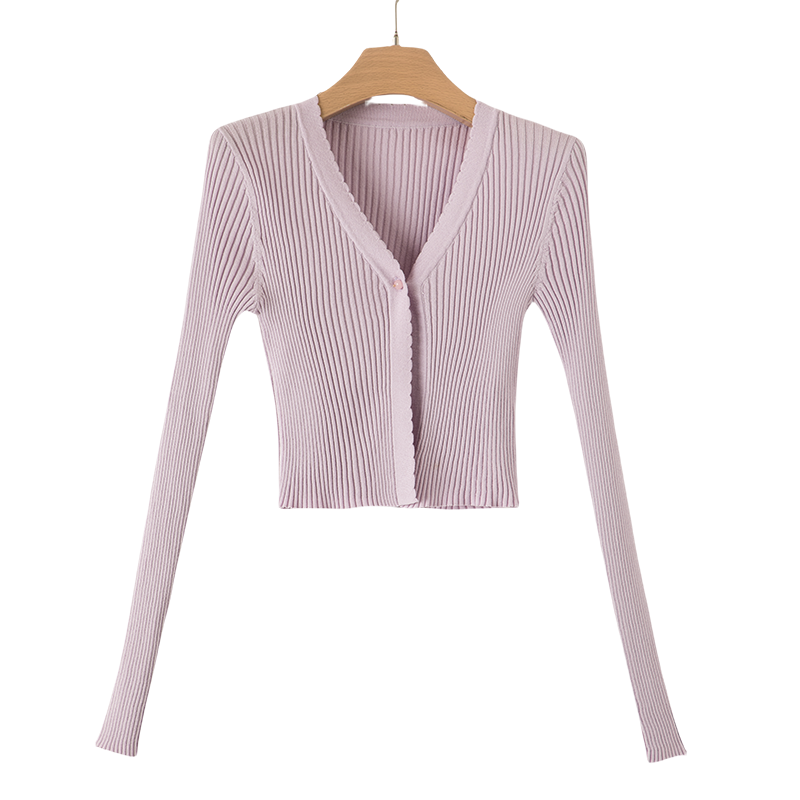 晚白2026年春新款时尚简约V领上衣亲肤舒适修身百搭针织开衫女