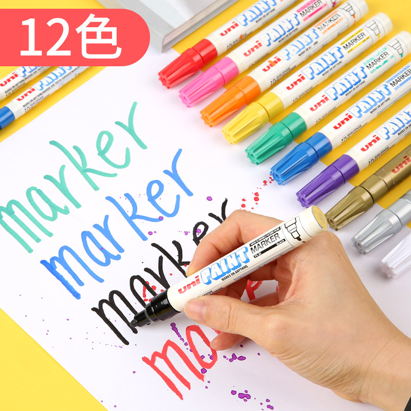 日本三菱油漆笔不掉色防水白笔油性笔马克笔学生用美术绘画高光笔白色记号笔大号工地大头笔签名笔金车轮胎笔