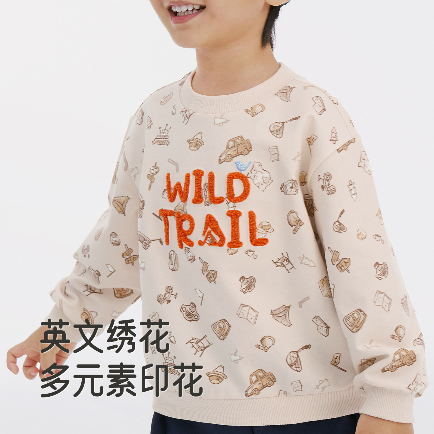 英氏儿童圆领卫衣春秋长袖男童春季套头绒衫百搭男宝宝潮牌上衣